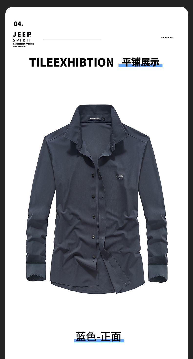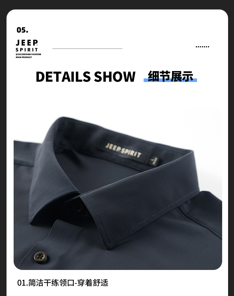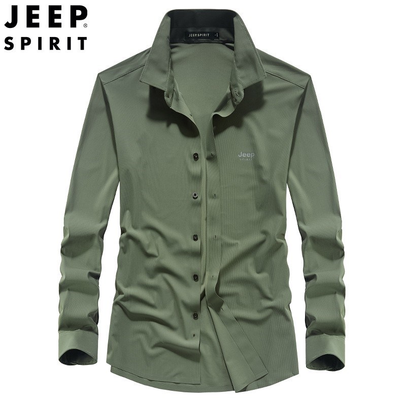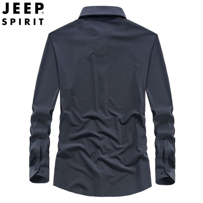 JEEP SPIRIT男士夏季休闲长袖衬衫中年衬衣春夏新款开衫舒适纯色百搭t恤22026