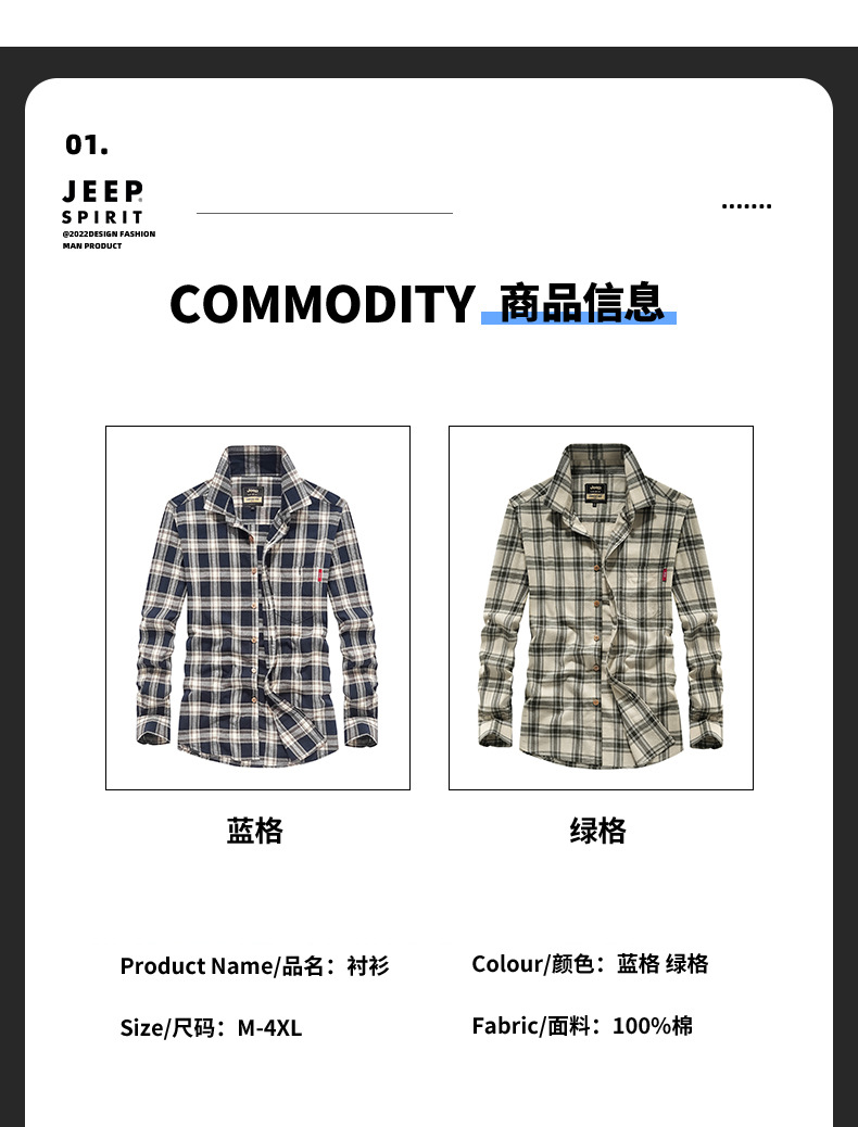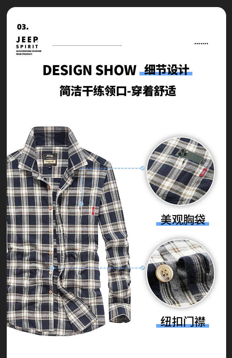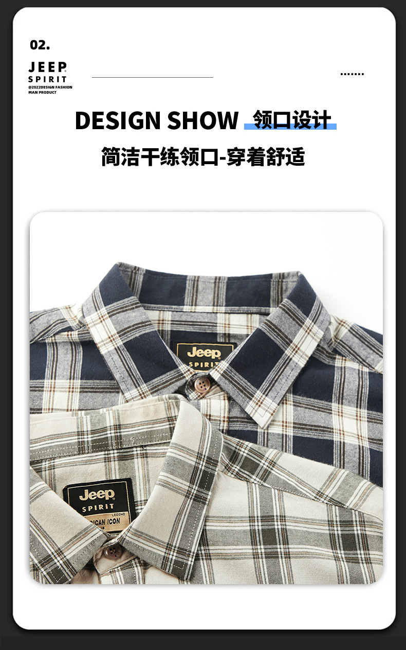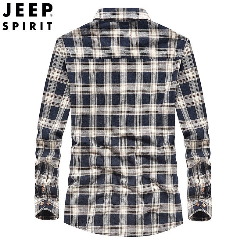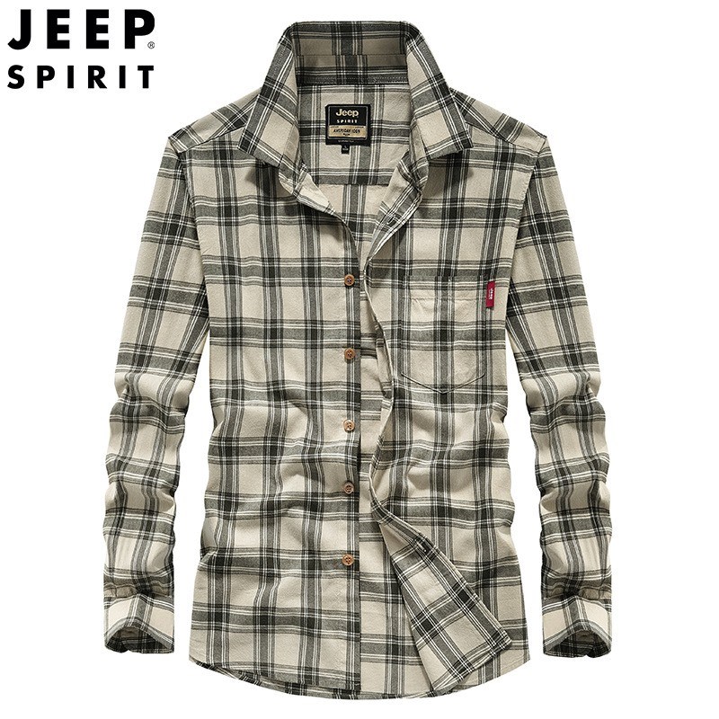 JEEP SPIRIT春夏新款时尚男士休闲格子长袖衬衣开衫舒适透气百搭格纹长袖t恤 2022