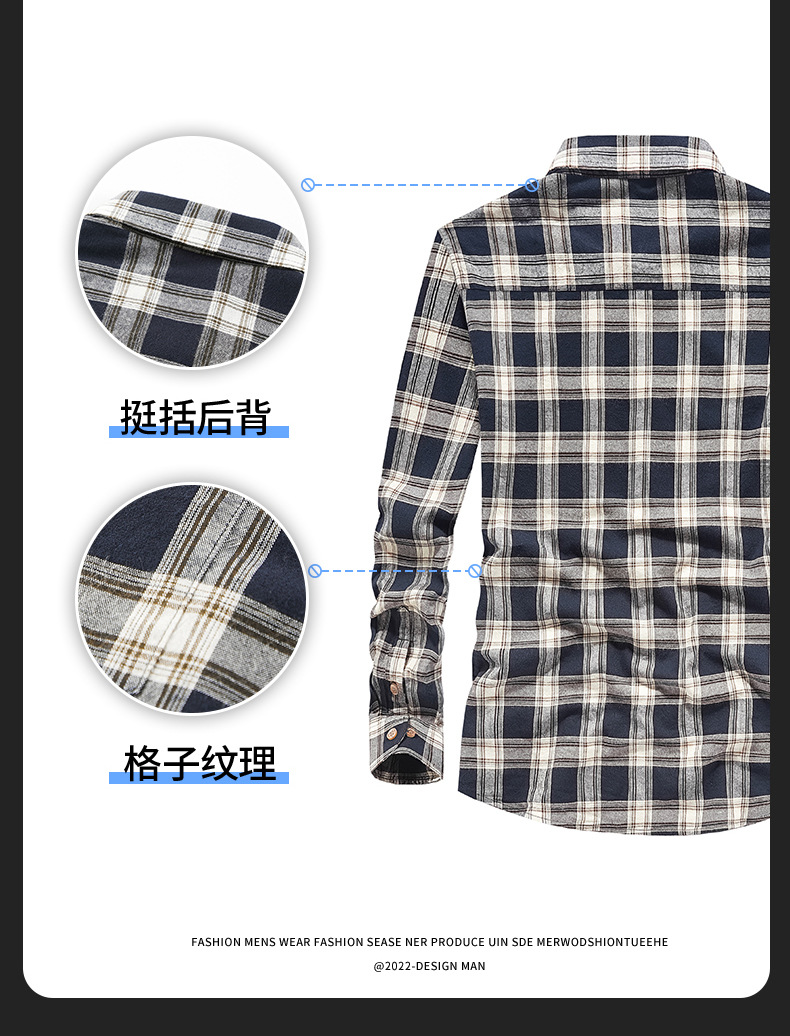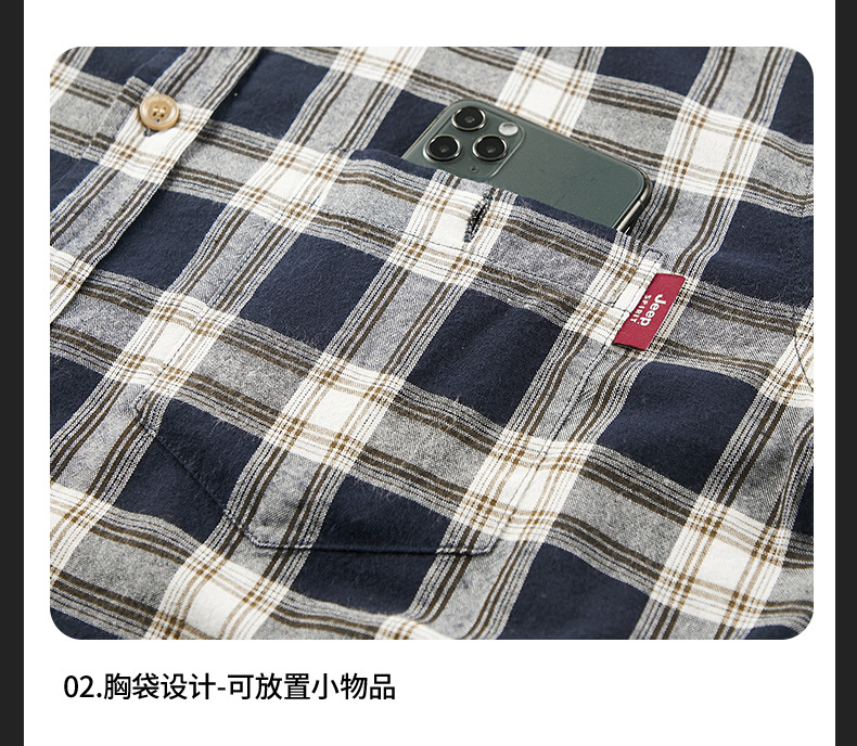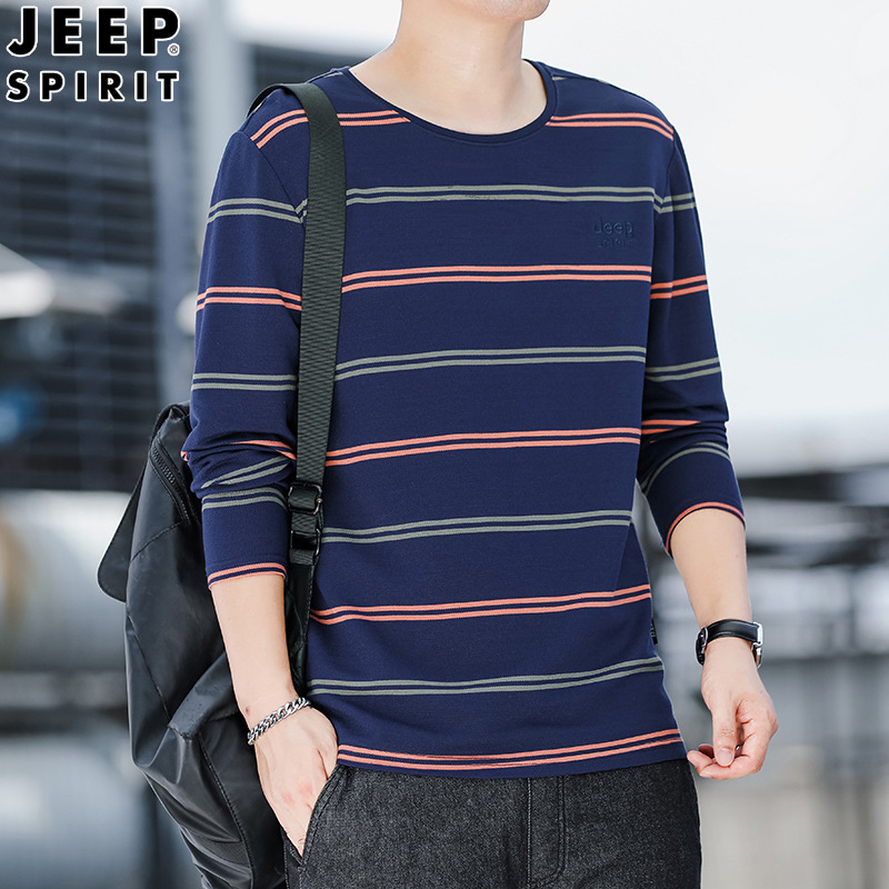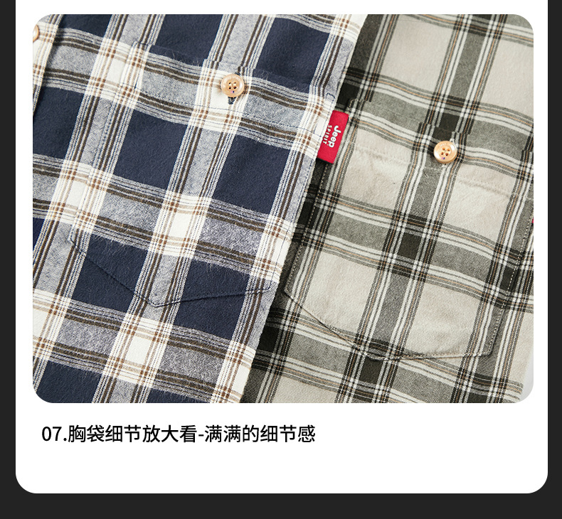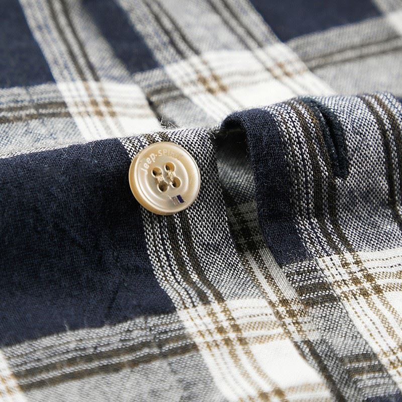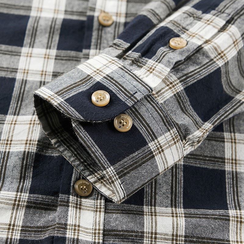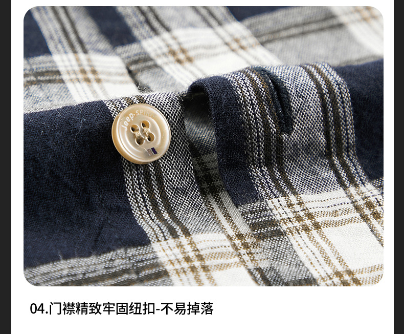 JEEP SPIRIT春夏新款时尚男士休闲格子长袖衬衣开衫舒适透气百搭格纹长袖t恤 2022