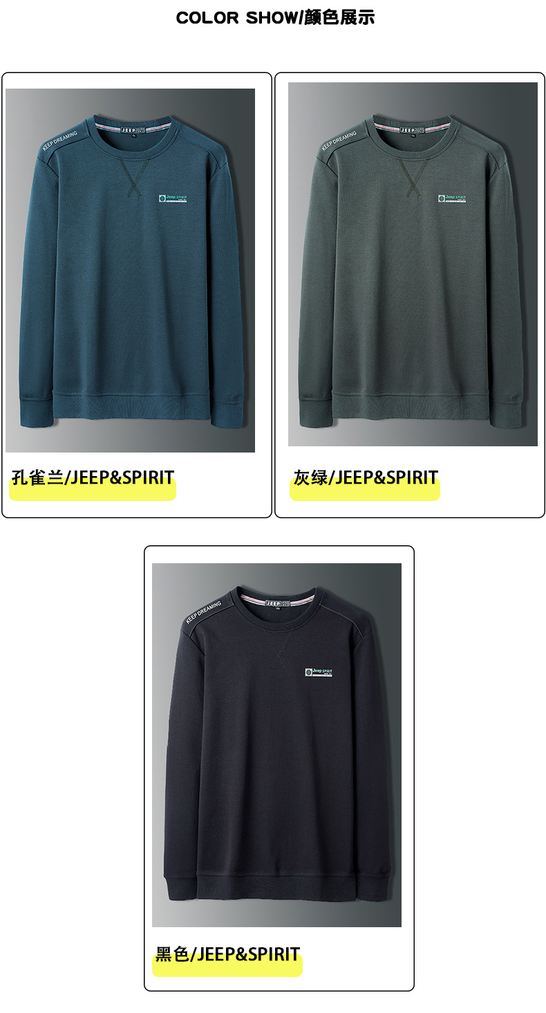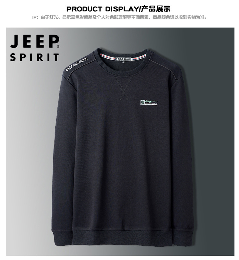 JEEP SPIRIT新款春秋季圆领卫衣男宽松运动简约百搭男士透气长袖T恤潮男装 HB8202