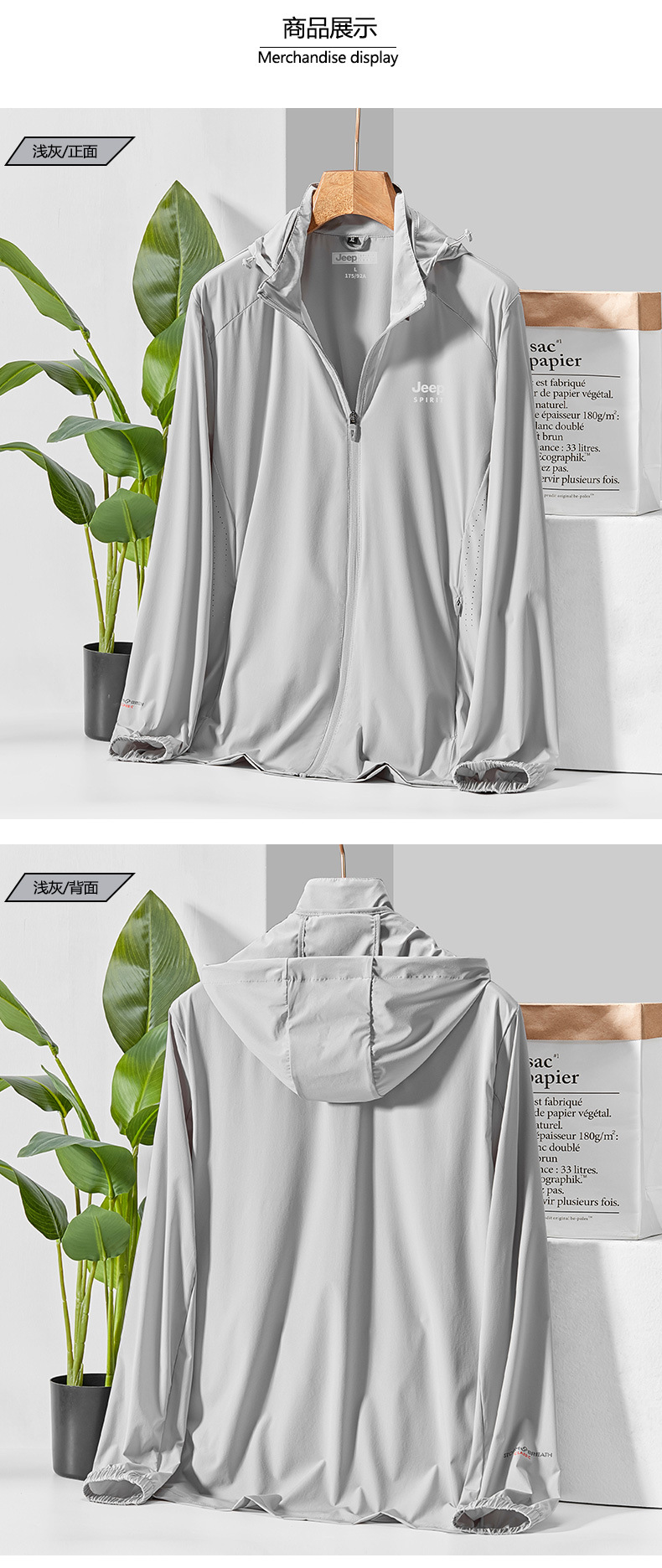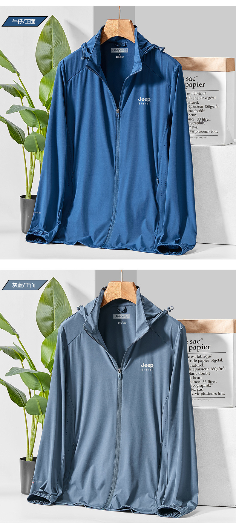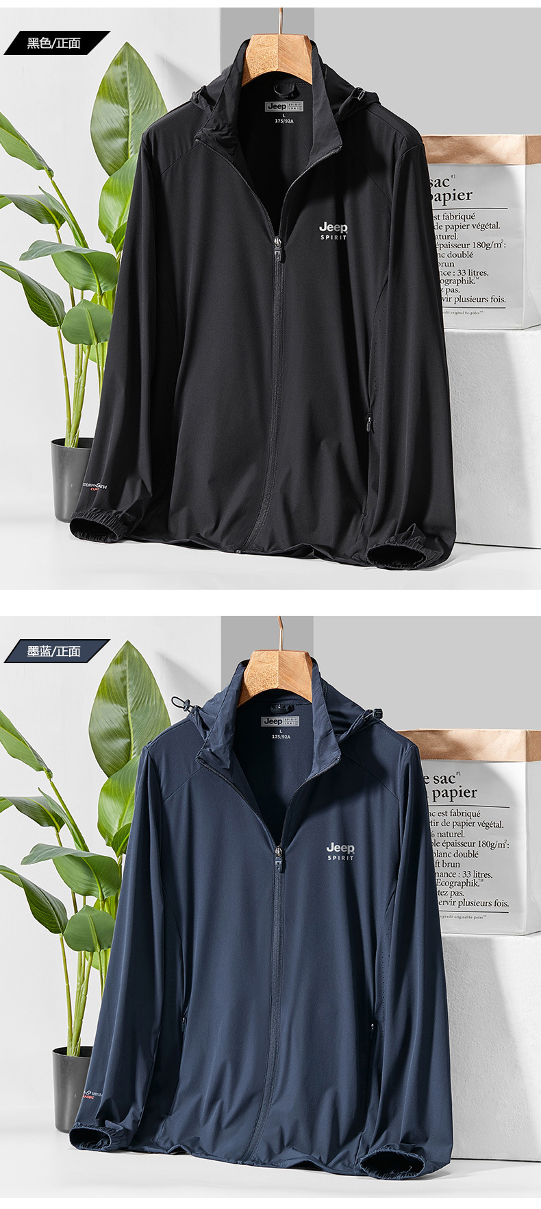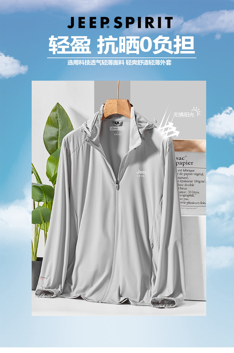 JEEP SPIRIT新款透气风衣户外运动春夏季皮肤风衣外套防紫外线防晒服男士DT301185