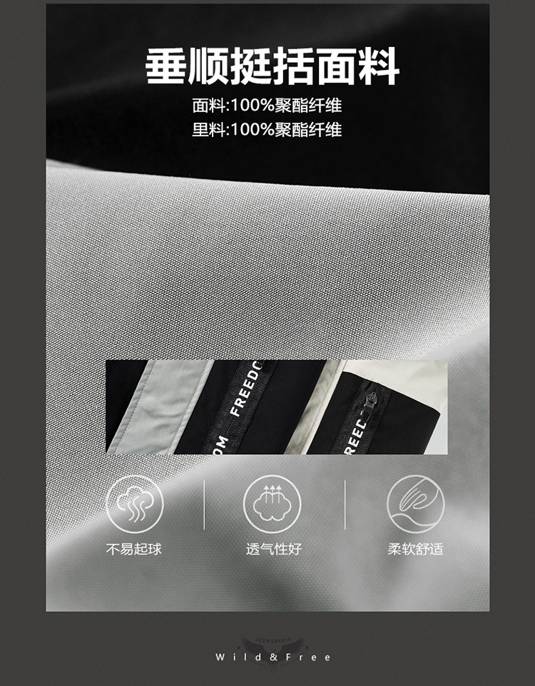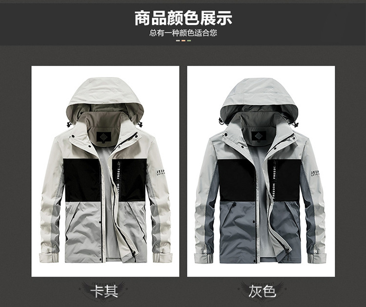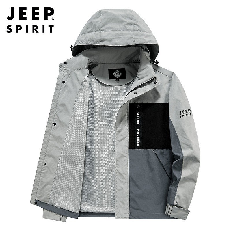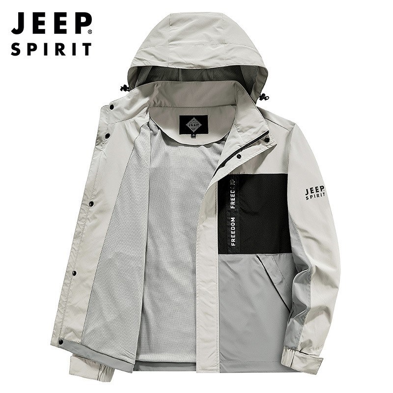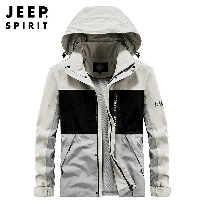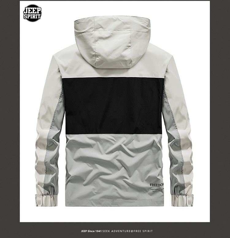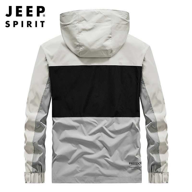JEEP SPIRIT拼接普通休闲侧缝插袋拉链青年灰色连帽夹克SLH721161