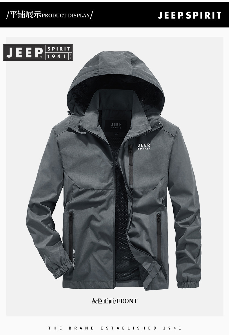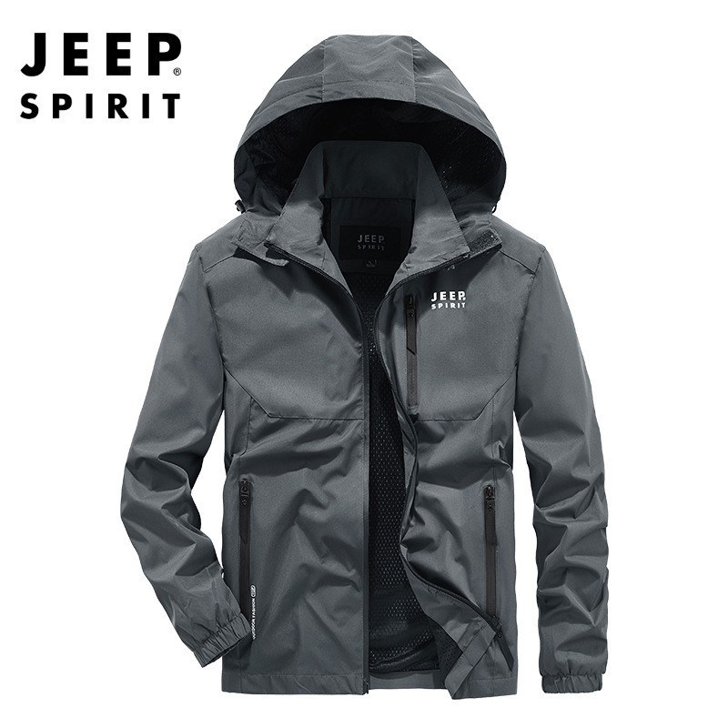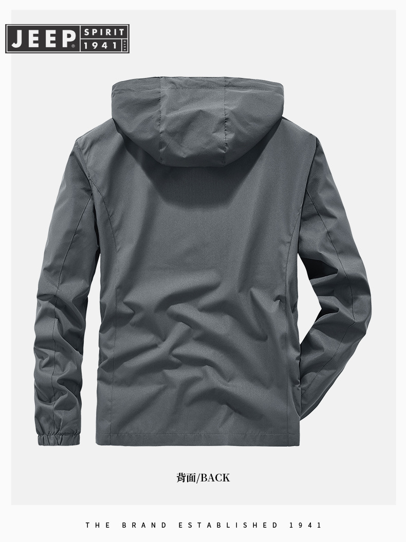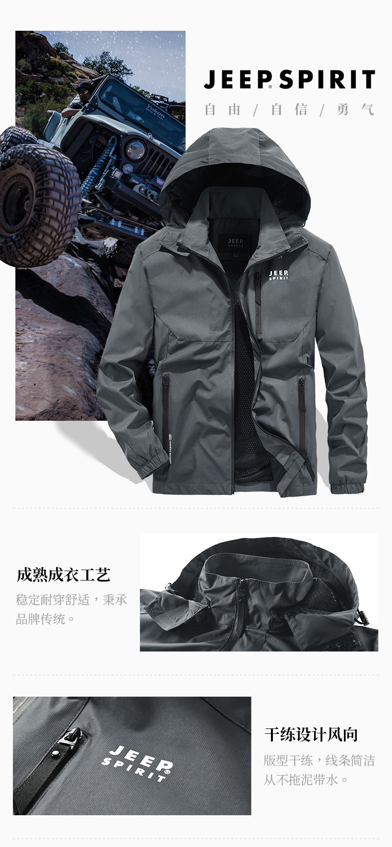JEEP SPIRIT新款休闲立领韩版侧缝插袋拉链青年纯色连帽夹克 SEF0712