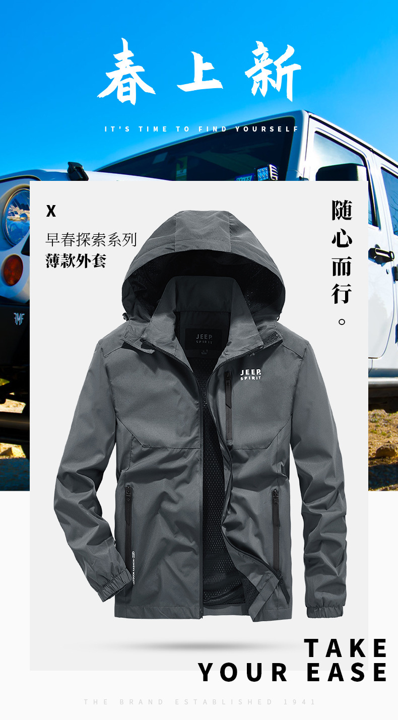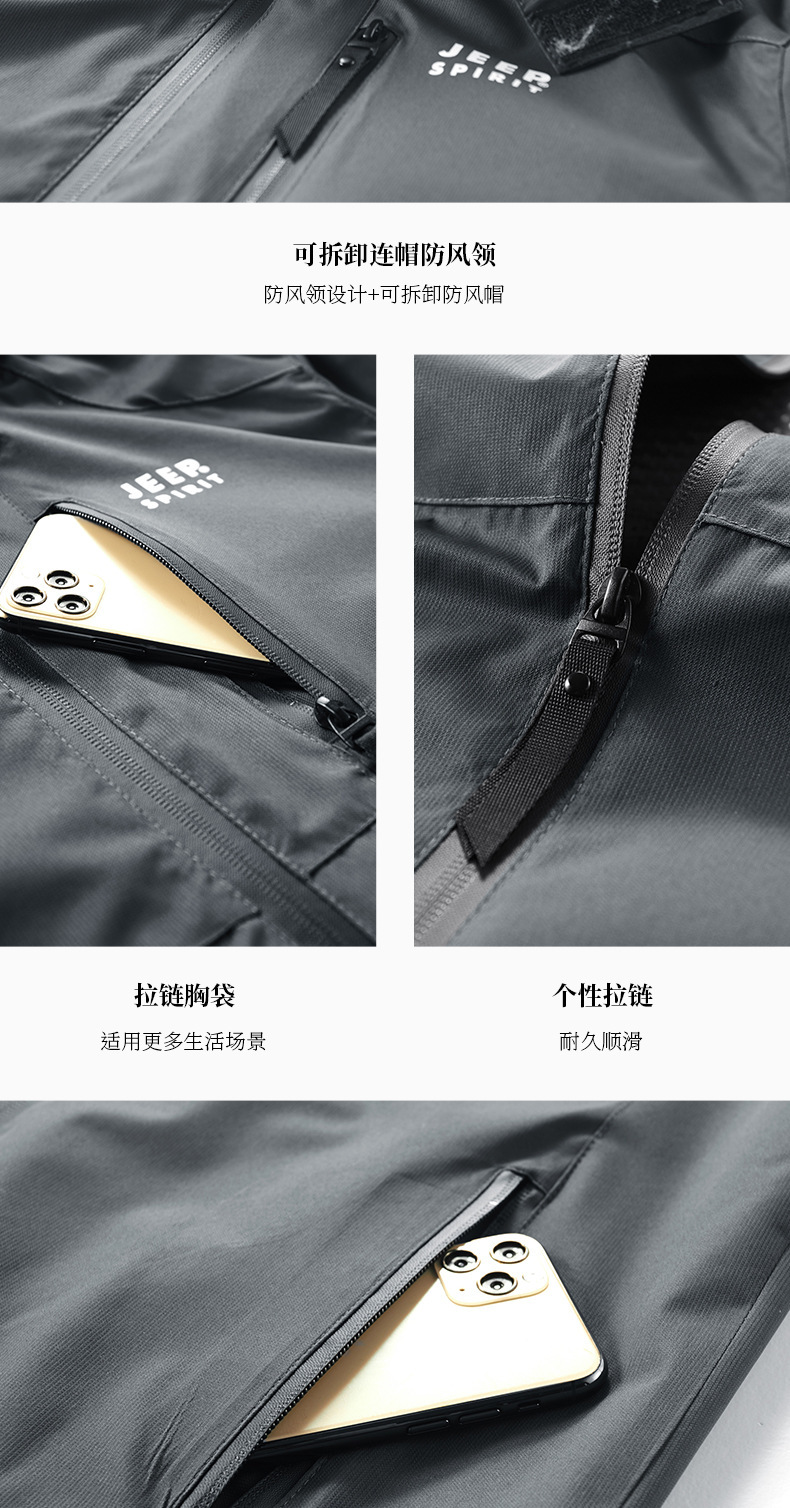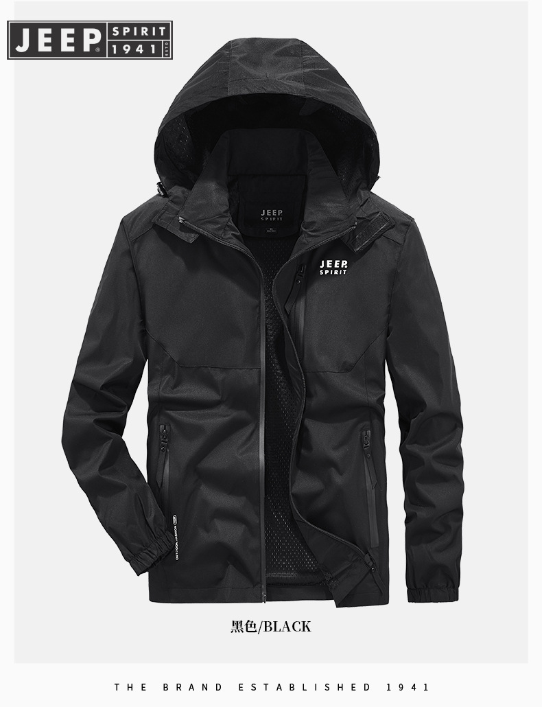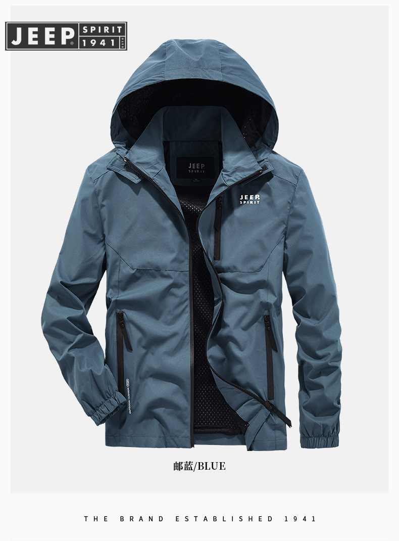 JEEP SPIRIT新款休闲立领韩版侧缝插袋拉链青年纯色连帽夹克 SEF0712