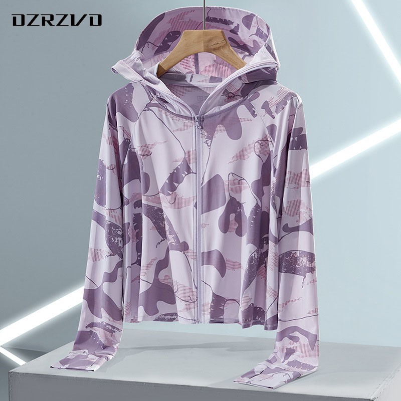 DZRZVD/杜戛地夏新款迷彩防晒衣女亲肤透气冰感皮肤风衣宽松高弹户外服大帽檐潮 111353