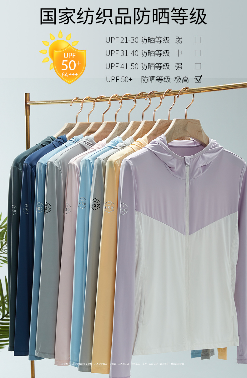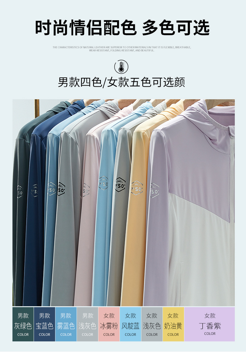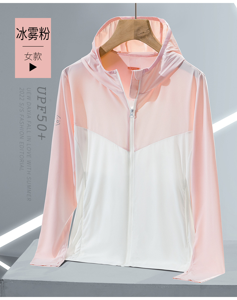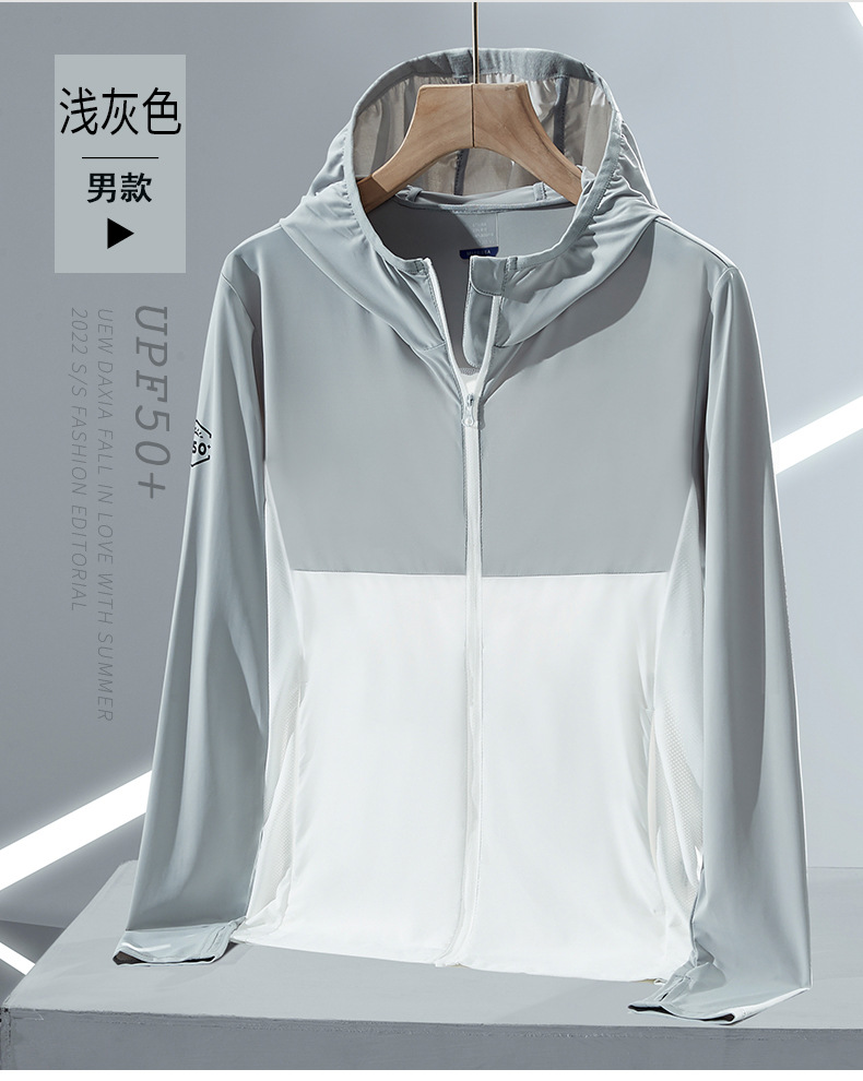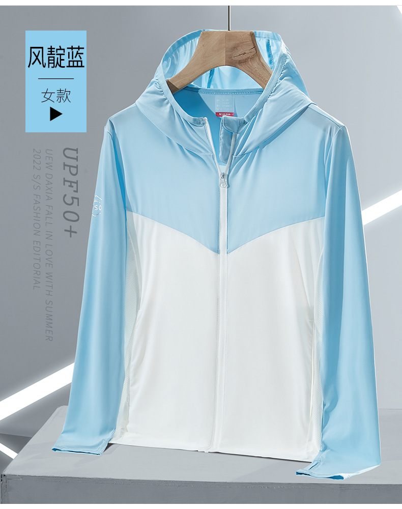 DZRZVD/杜戛地夏新款情侣拼色防晒衣女士冰感透气棉感皮肤风衣男士假日旅行潮 111348
