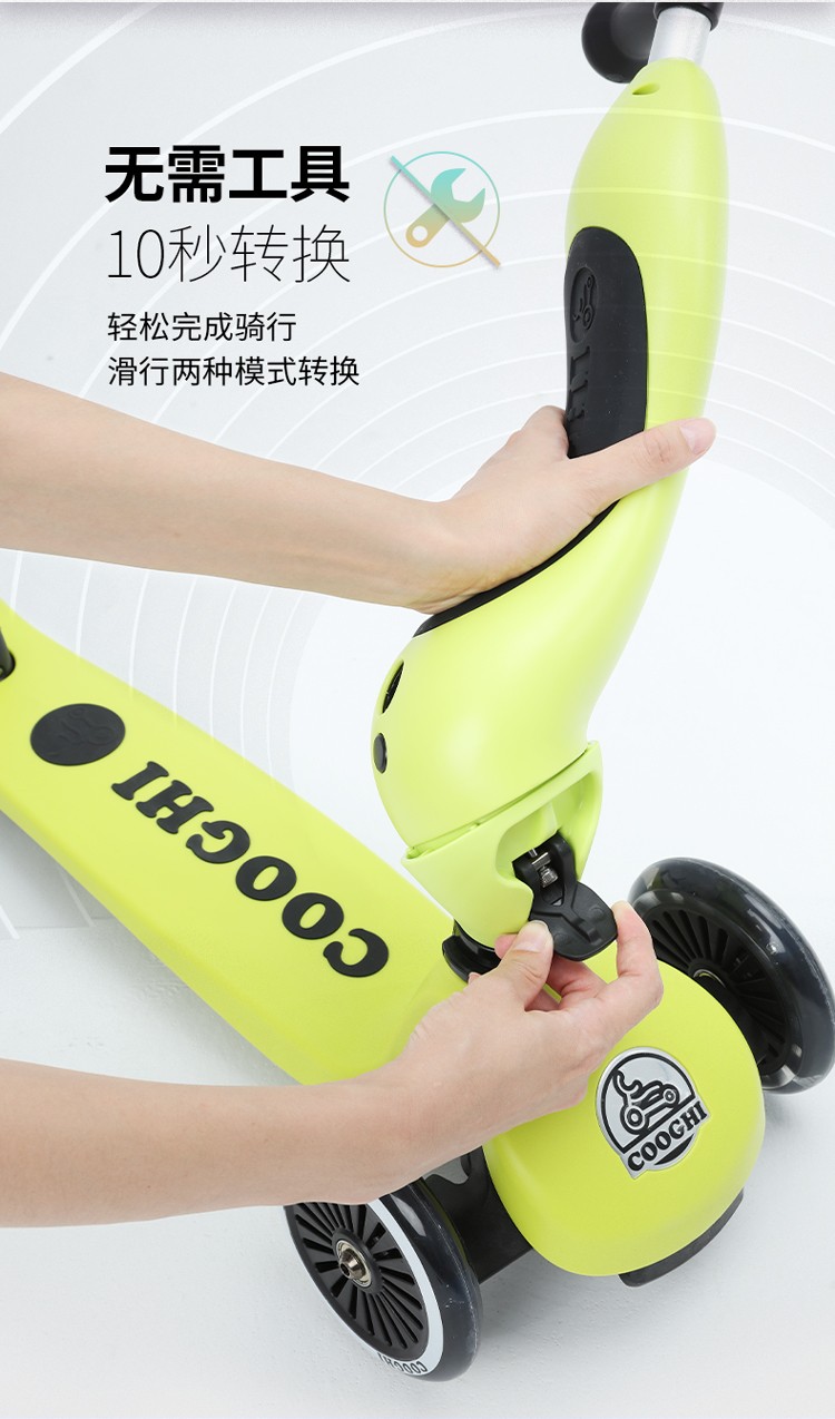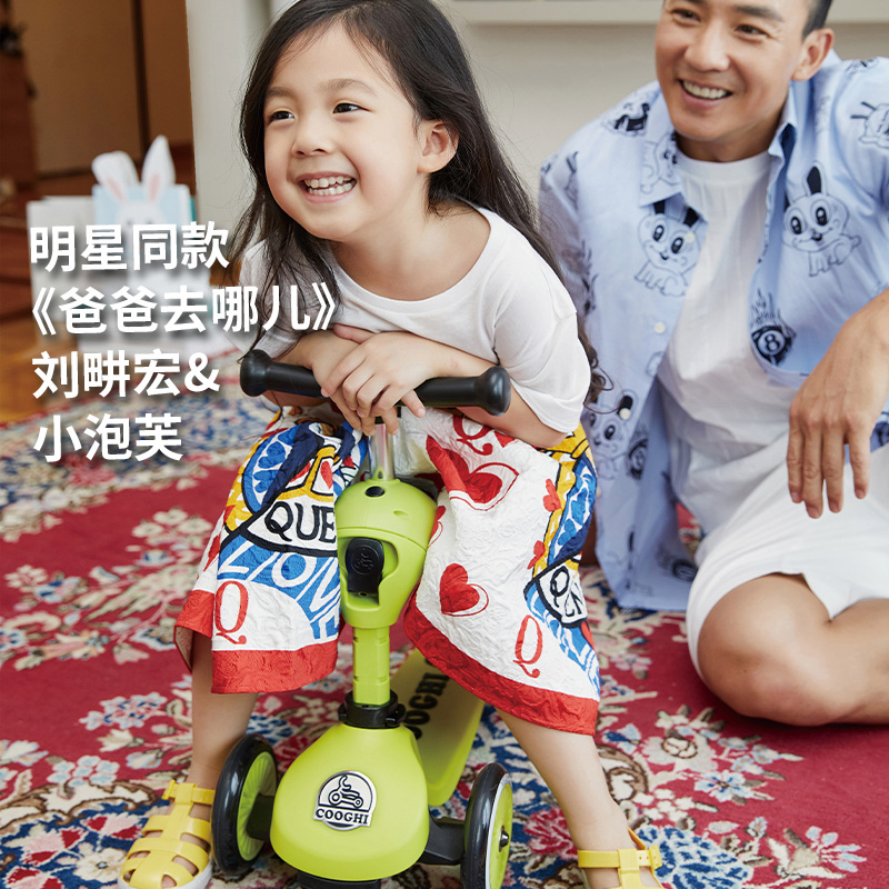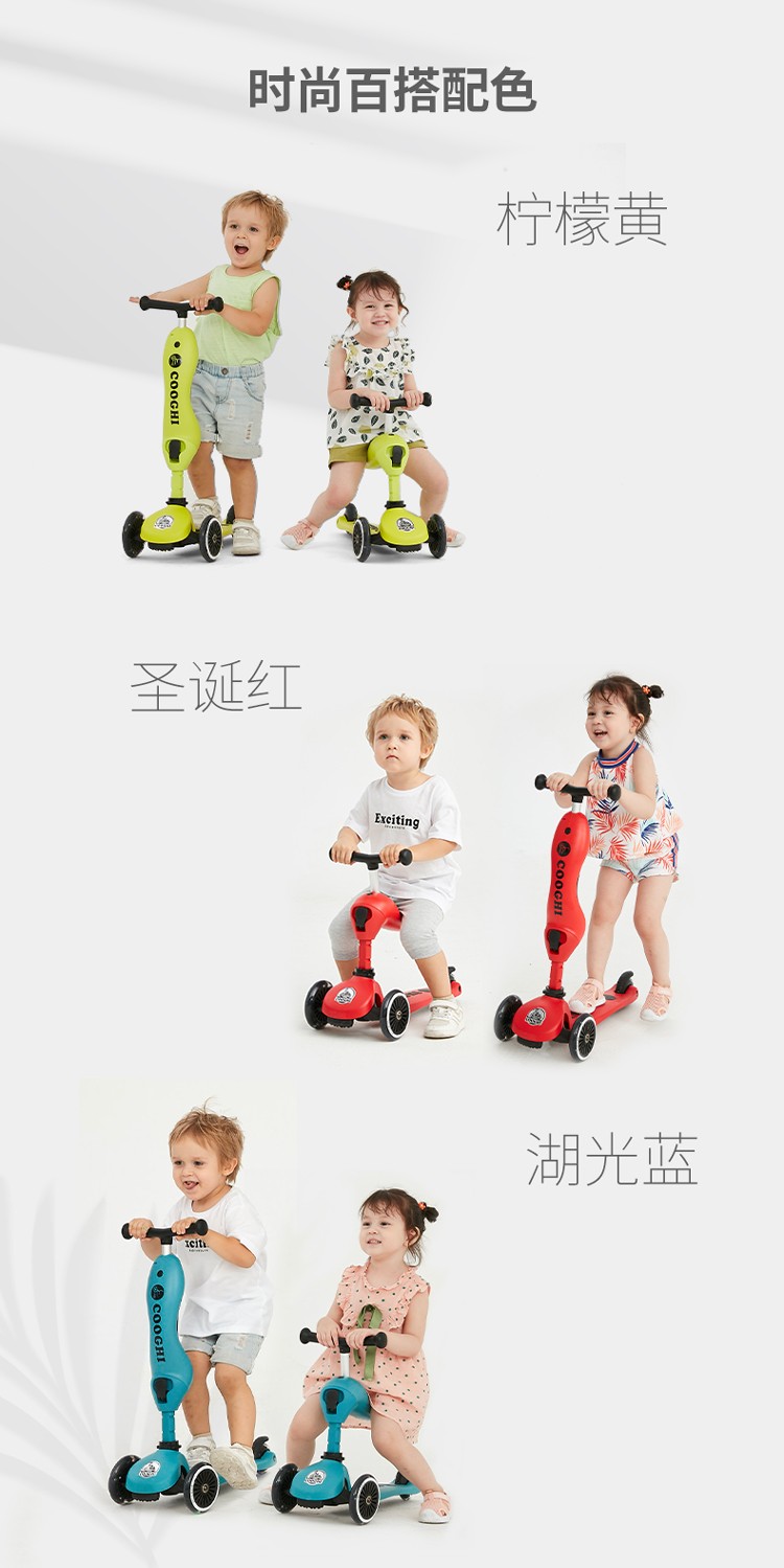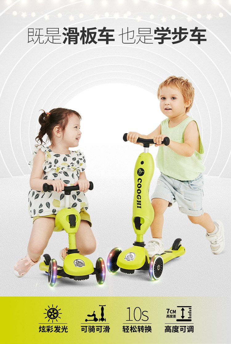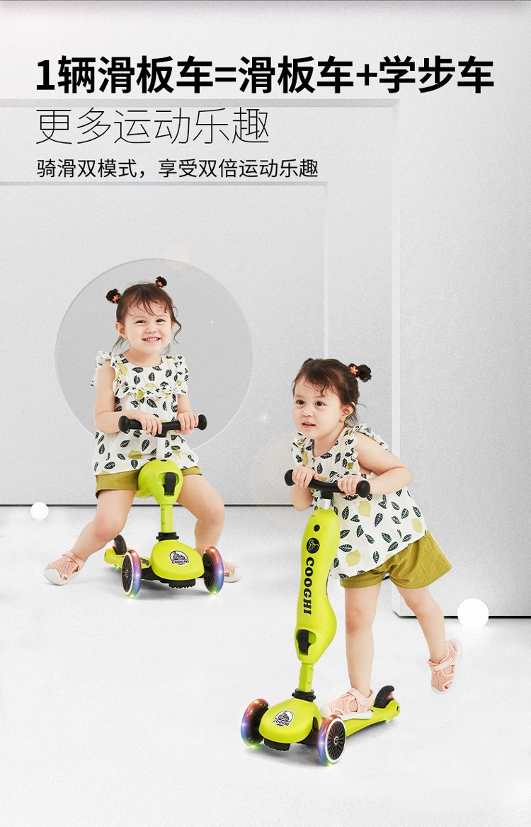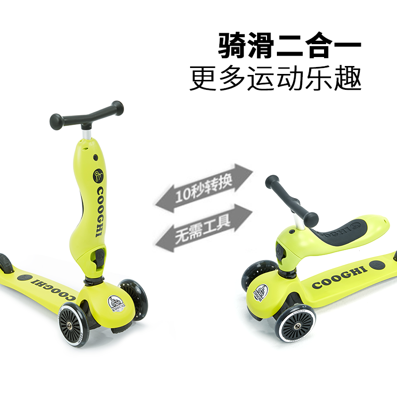 COOGHI酷骑 儿童滑板车1-3-6岁小孩二合一酷奇多功能宝宝可坐溜溜V2发光轮