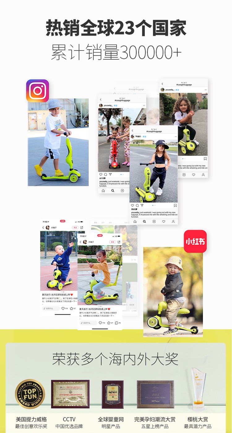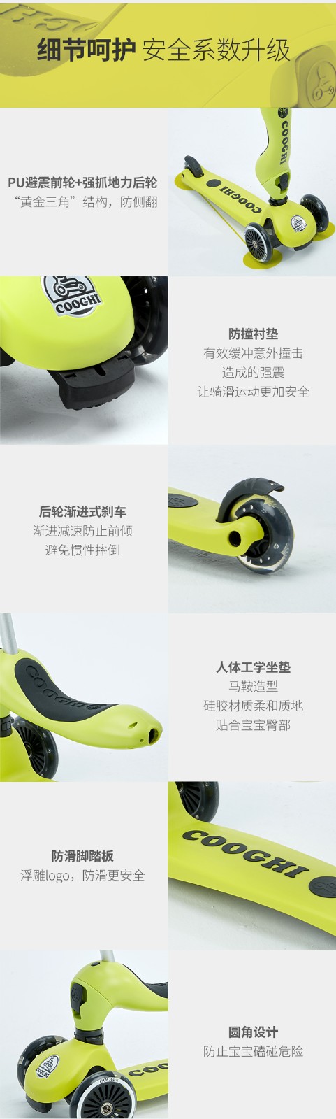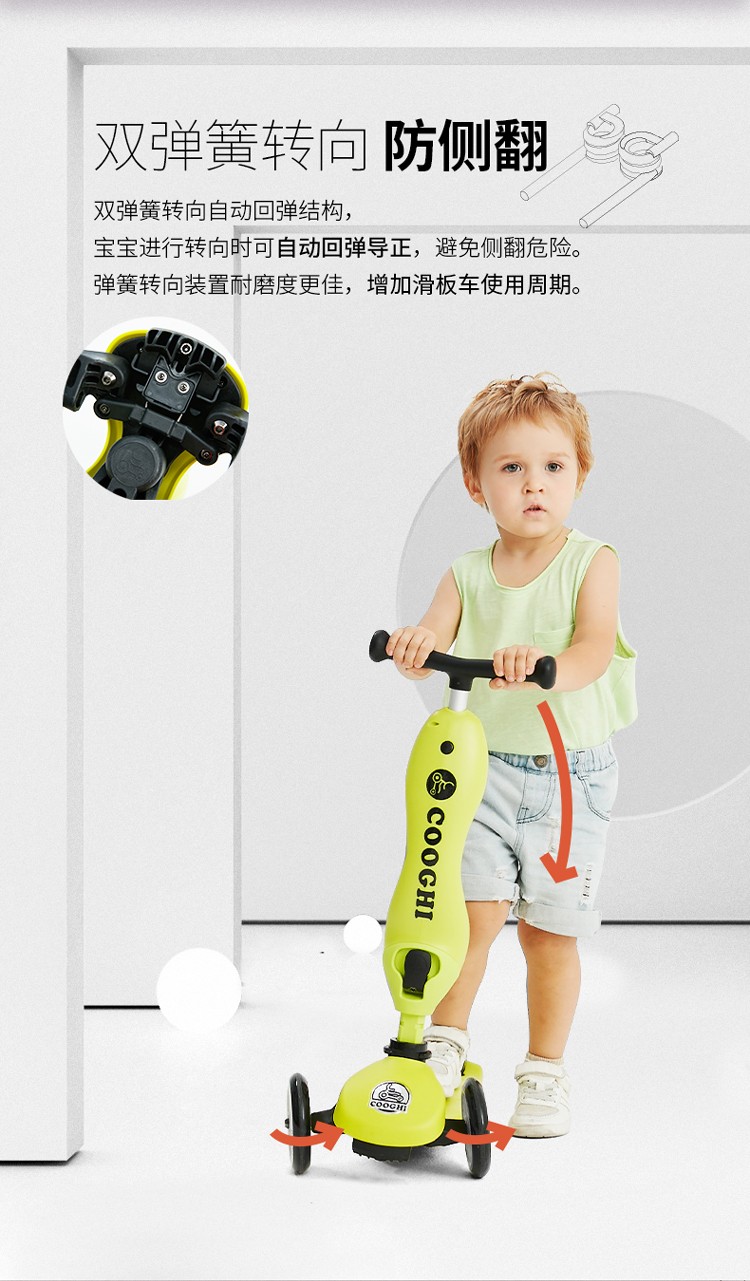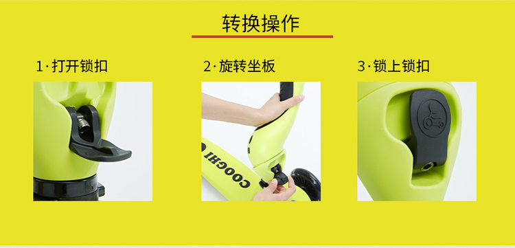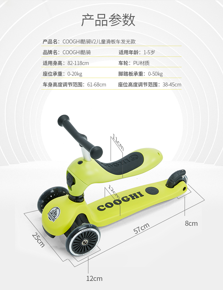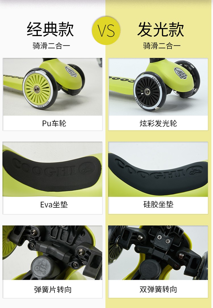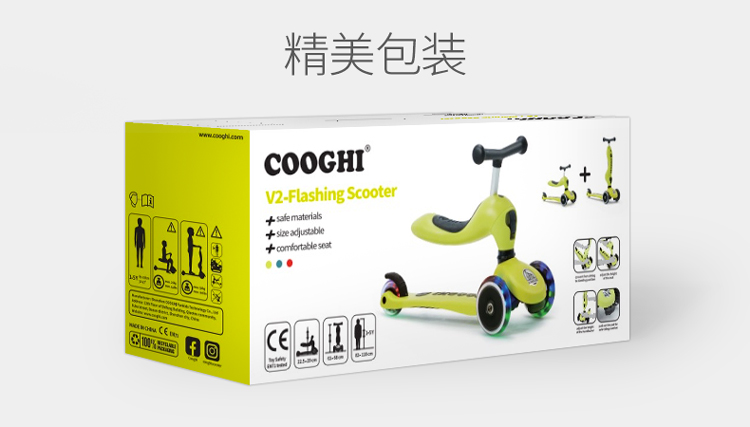 COOGHI酷骑 儿童滑板车1-3-6岁小孩二合一酷奇多功能宝宝可坐溜溜V2发光轮