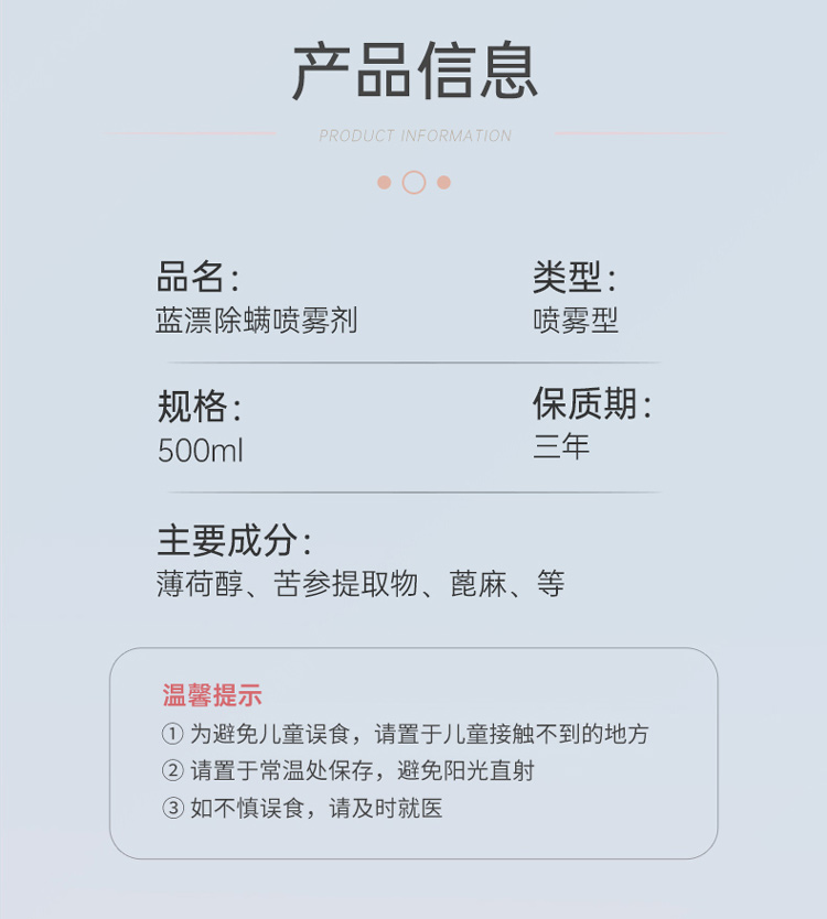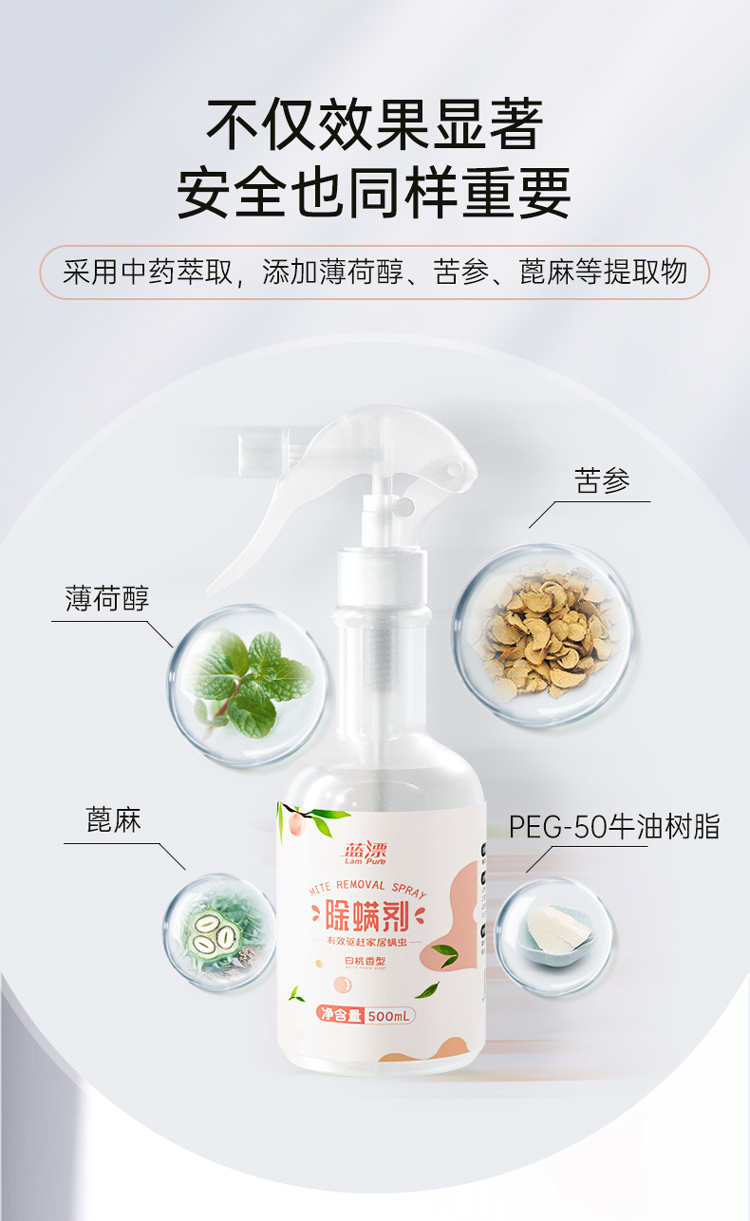 除螨喷雾床上免洗祛除螨虫神器本草除菌杀菌克星家用床垫除蝻喷雾500m 白桃香