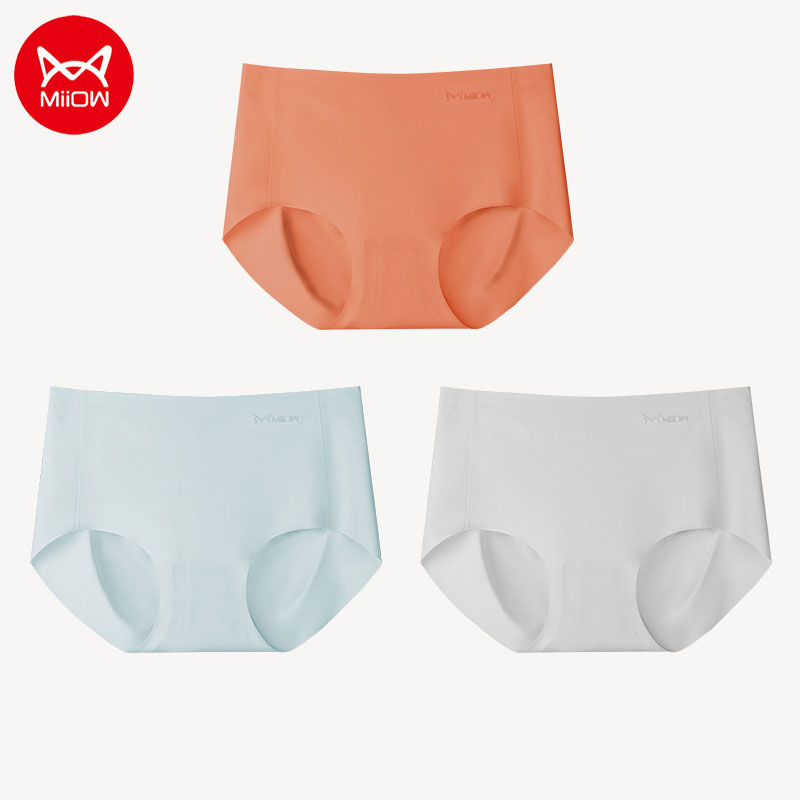 MiiOW/猫人冰丝内裤女士无痕纯棉裆抗菌少女纯欲夏季薄款收腹大码三角裤潮JC3366