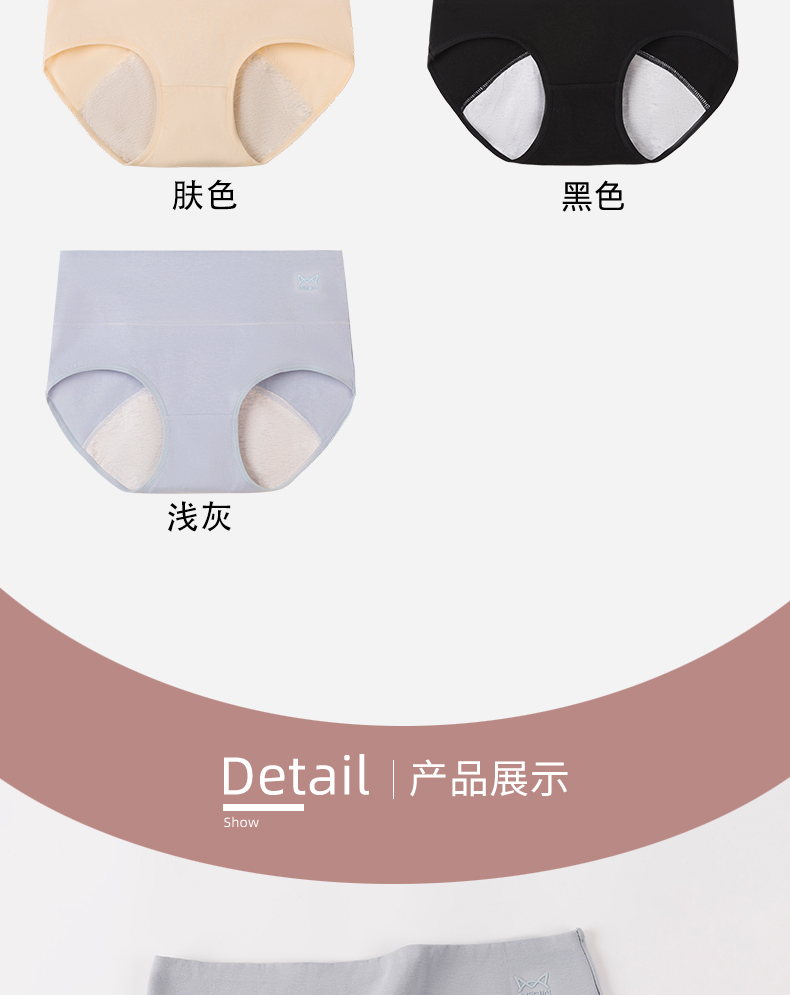 MiiOW/猫人内裤女士月经期防漏安全姨妈中高腰例假纯棉抗菌裆卫生JC5995