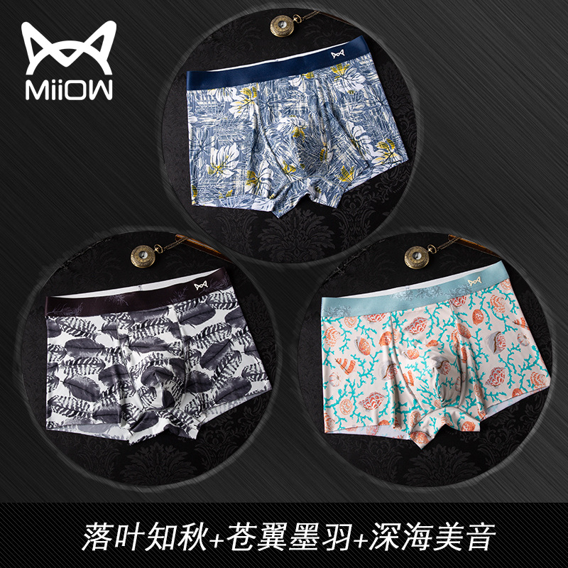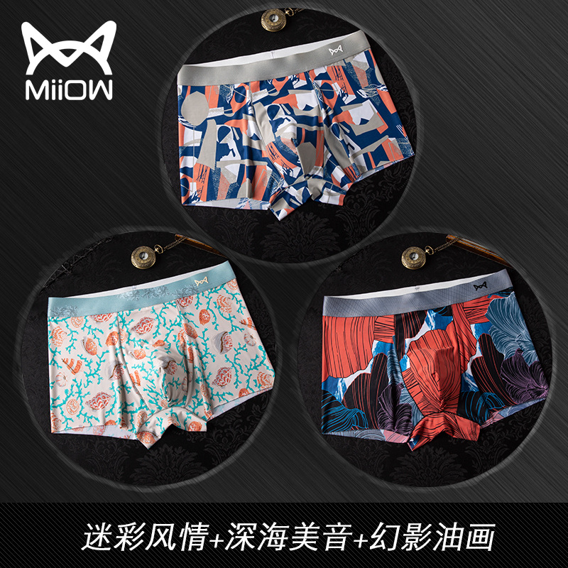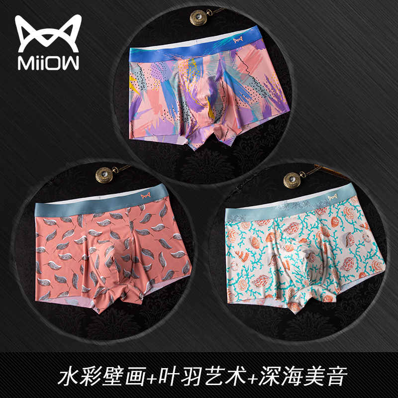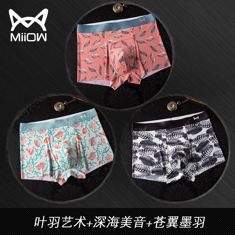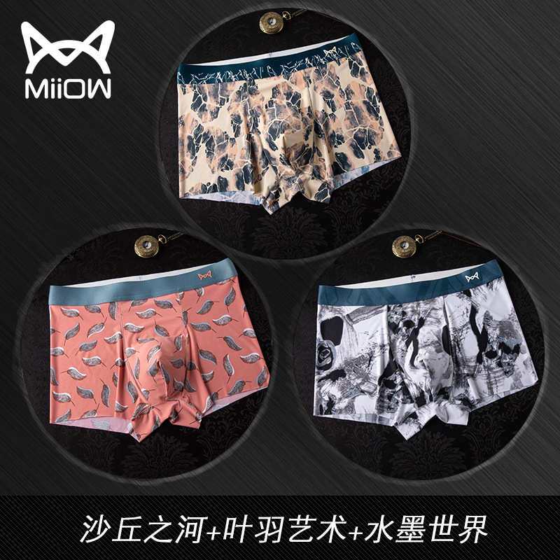 MiiOW/猫人冰丝内裤男春季新品男内裤冰丝男士平角短裤夏季新品无痕中腰款大码男生JC89300