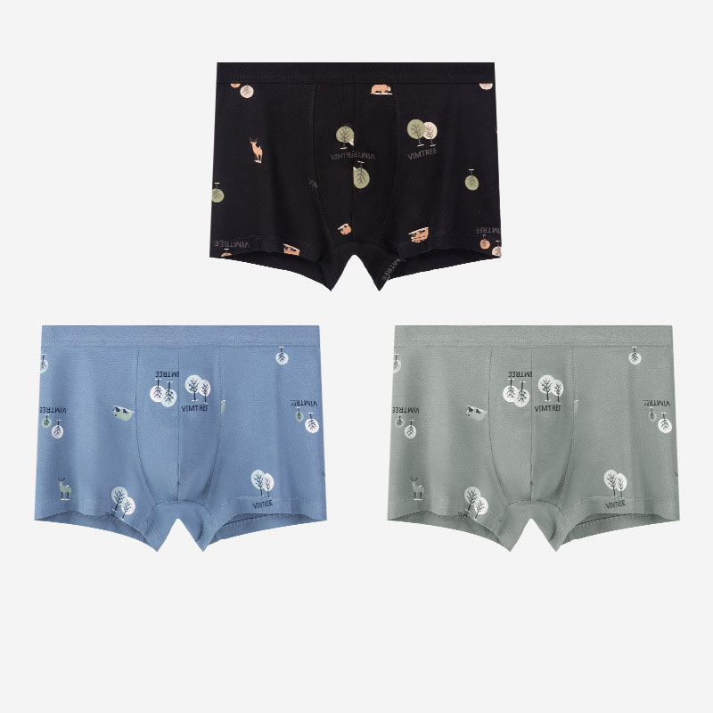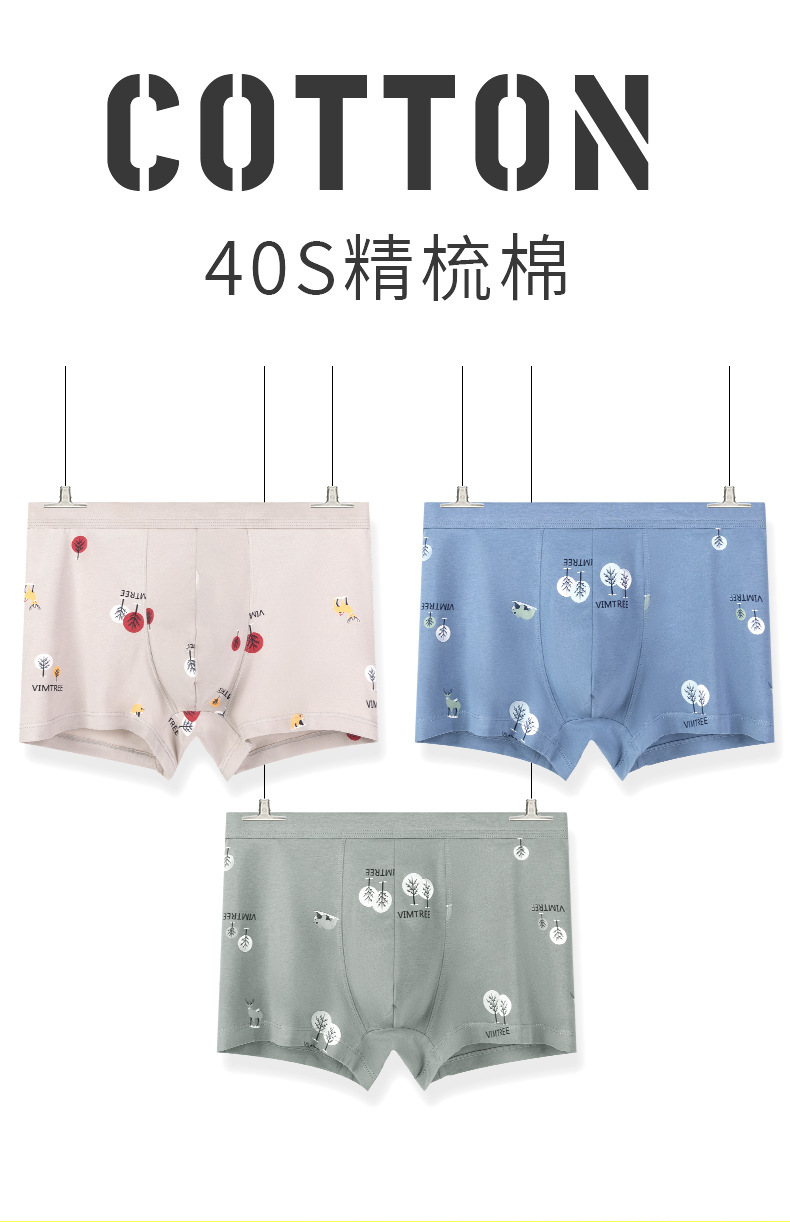 MiiOW/猫人内裤男士棉质四角平角短裤头青少年宽松运动男生无痕大码裤衩80168
