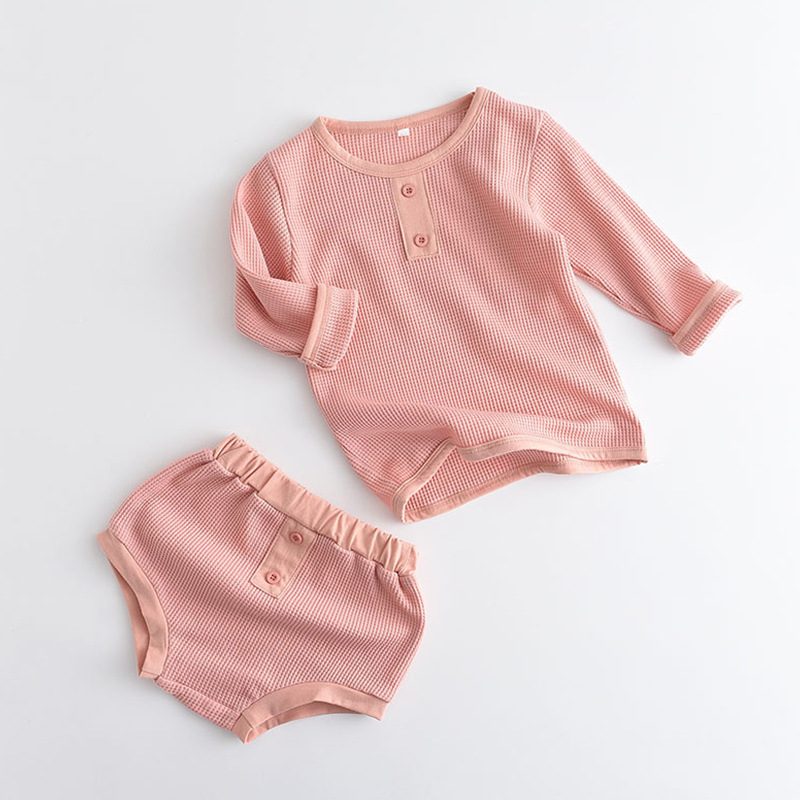 婴童套装春款男女宝宝棉布套装长袖卫衣+短裤婴儿家居服AH4537