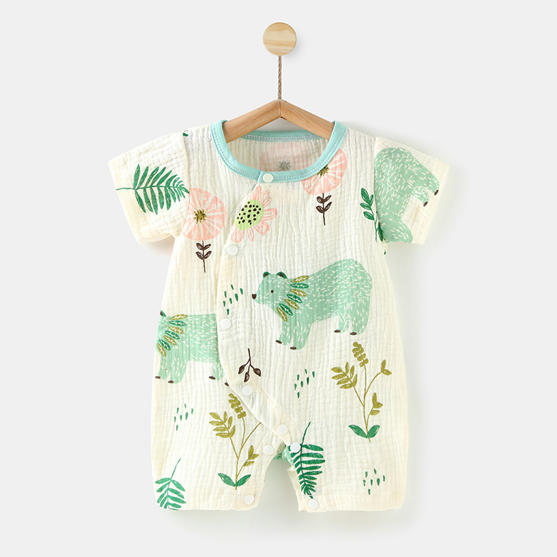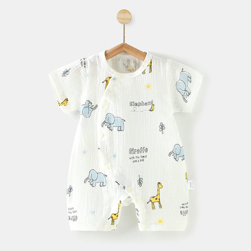 Honeyson婴儿连体衣夏季泡泡纱布短袖哈衣斜开护肚宝宝纯棉透气睡衣爬服潮H095