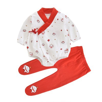 Honeyson婴儿连体衣秋装网红ins汉服长袖三角哈衣冬宝宝包屁衣和尚服初生x223