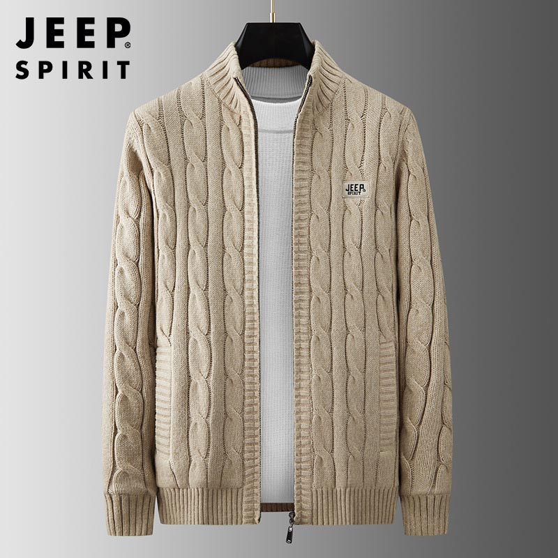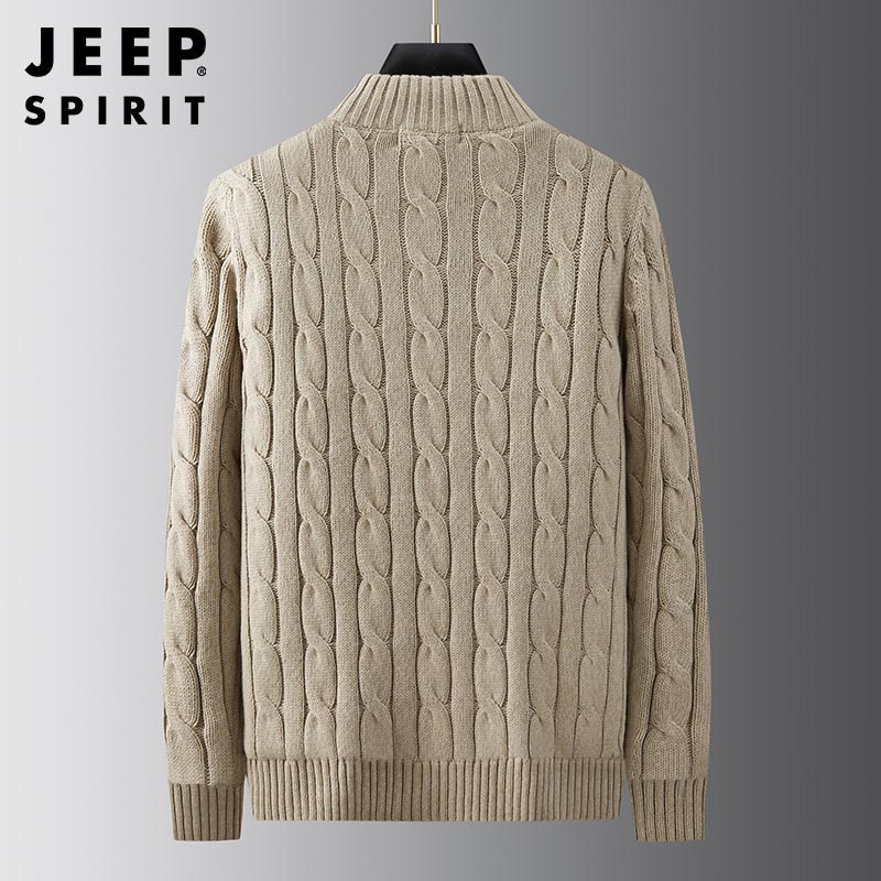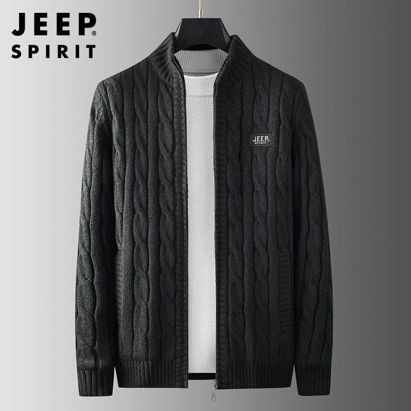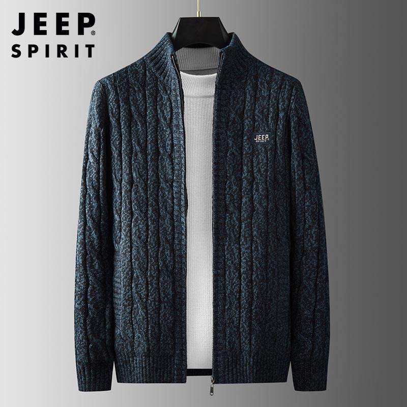 JEEP SPIRIT秋冬新品加绒毛衣秋冬保暖针织衫立领开衫男卫衣加厚气质外套JD0551537