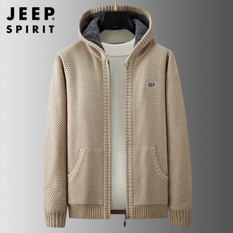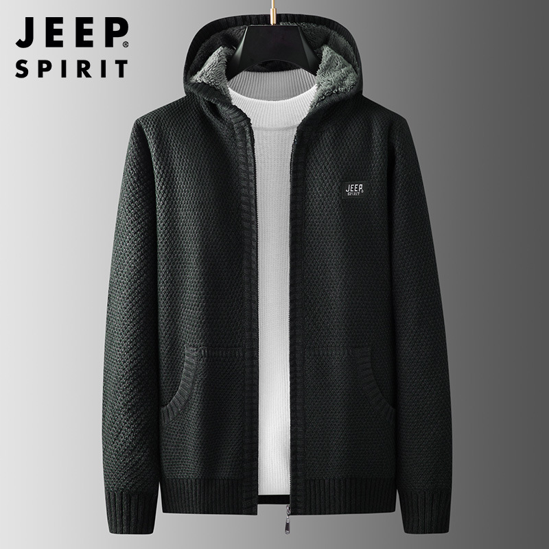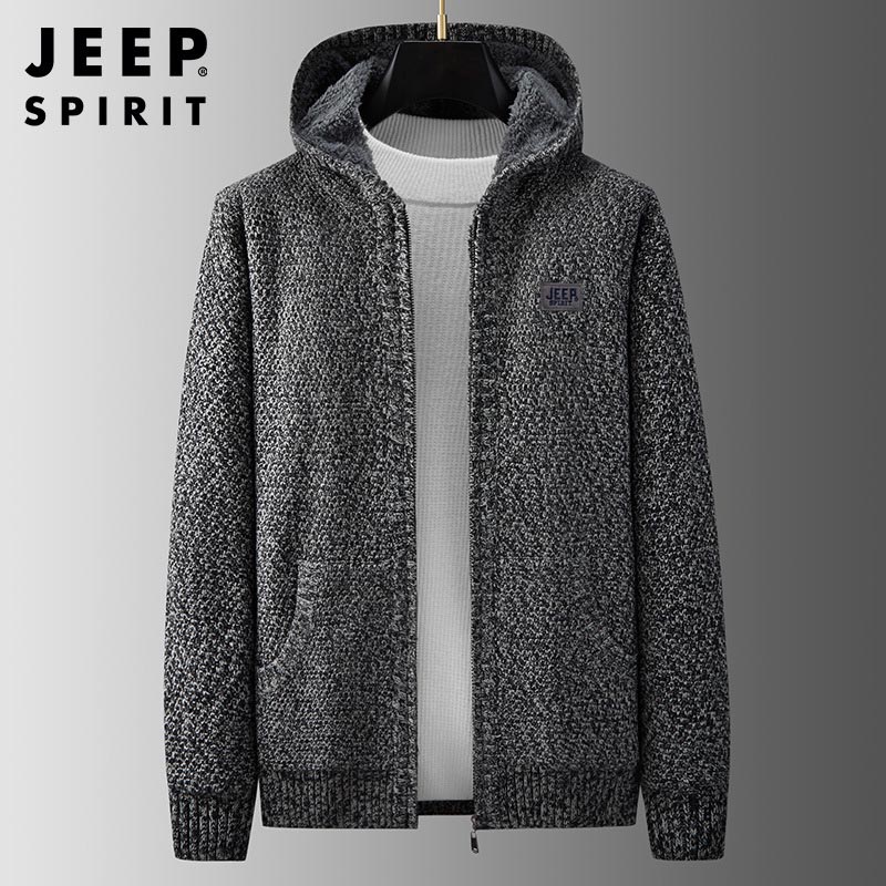 JEEP SPIRIT男士开衫休闲宽松针织衫连帽毛衣加绒加厚秋冬新品保暖外套潮JD0551541#