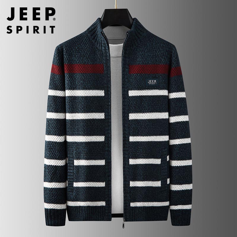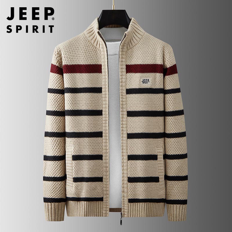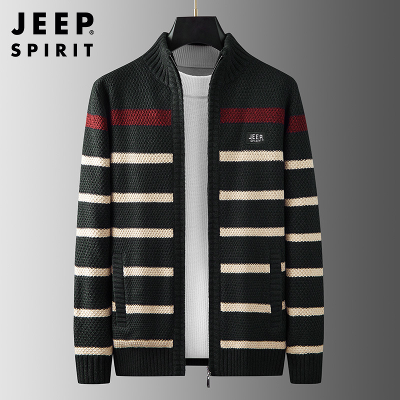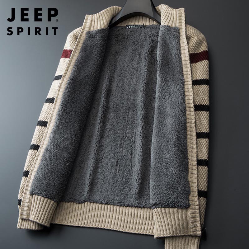 JEEP SPIRIT秋冬新品加绒毛衣男士保暖针织衫立领开衫卫衣加厚羊毛衫外套JD0551532