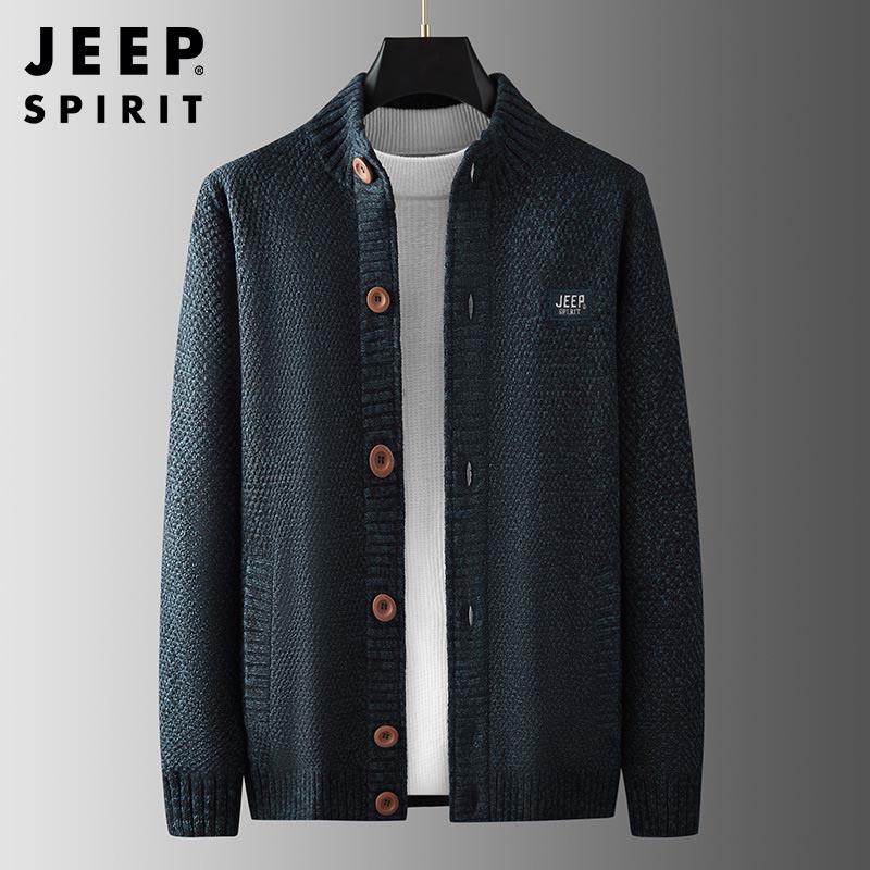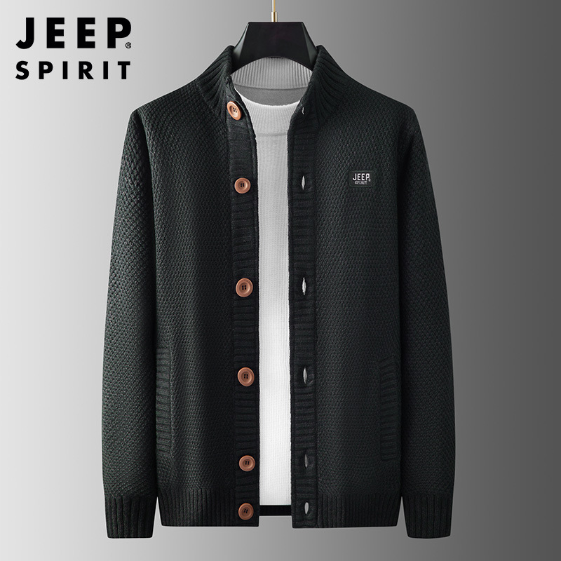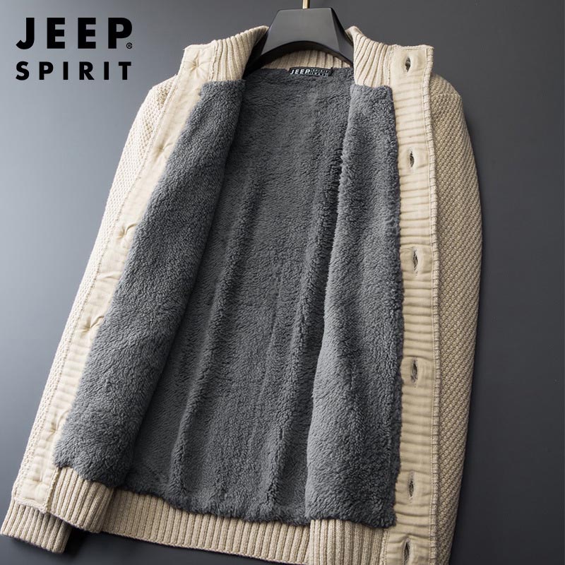 JEEP SPIRIT秋冬新品加绒加厚新款开衫毛衣男士针织衫风衣男外套立领保暖JD0551539#