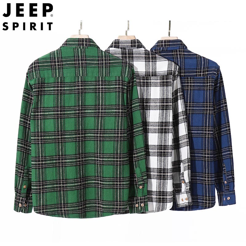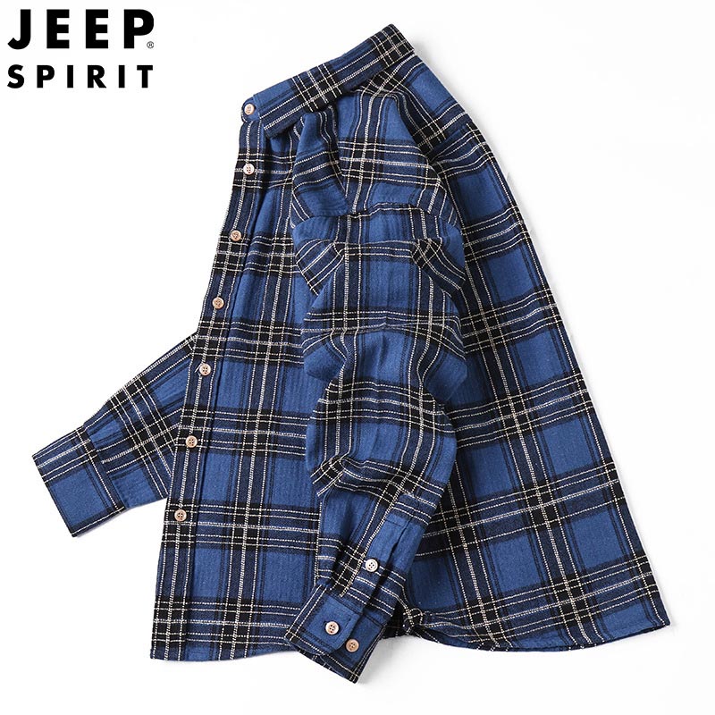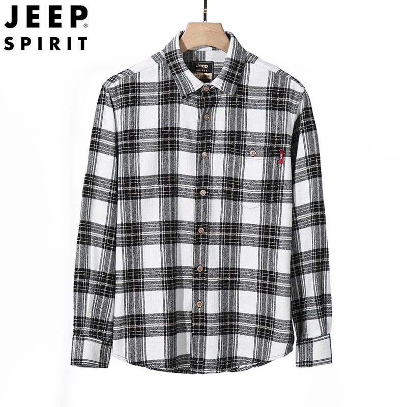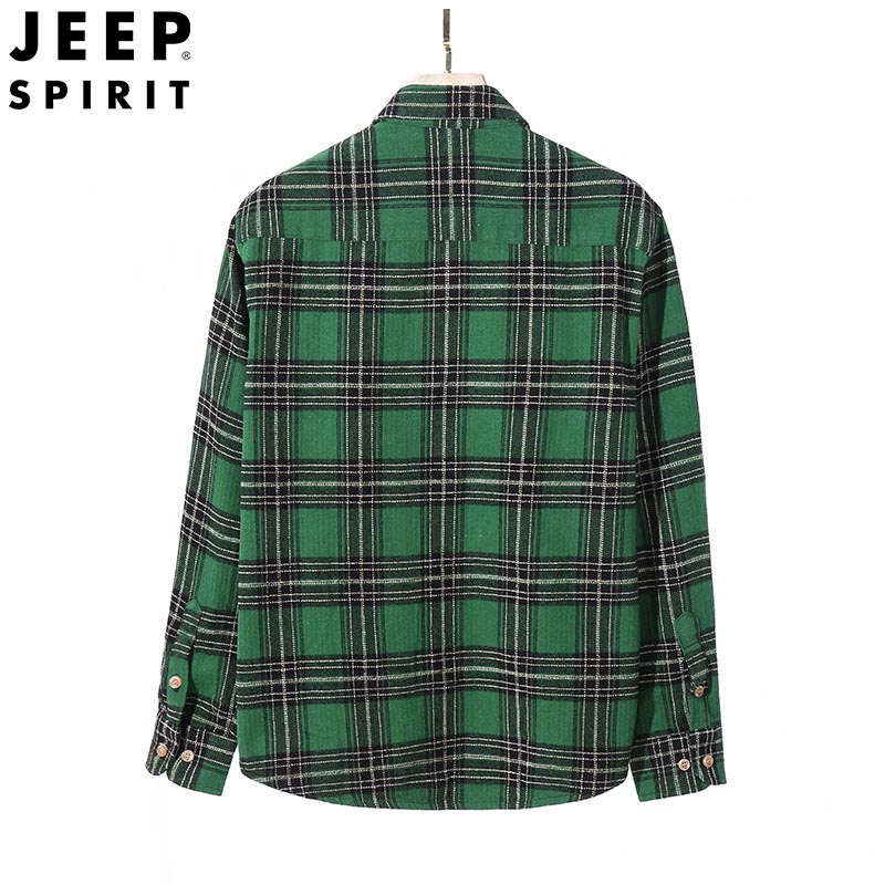 JEEP SPIRIT秋冬新品秋季新款男士口袋长袖衬衫宽松上衣格子衬衣男大码H-2030