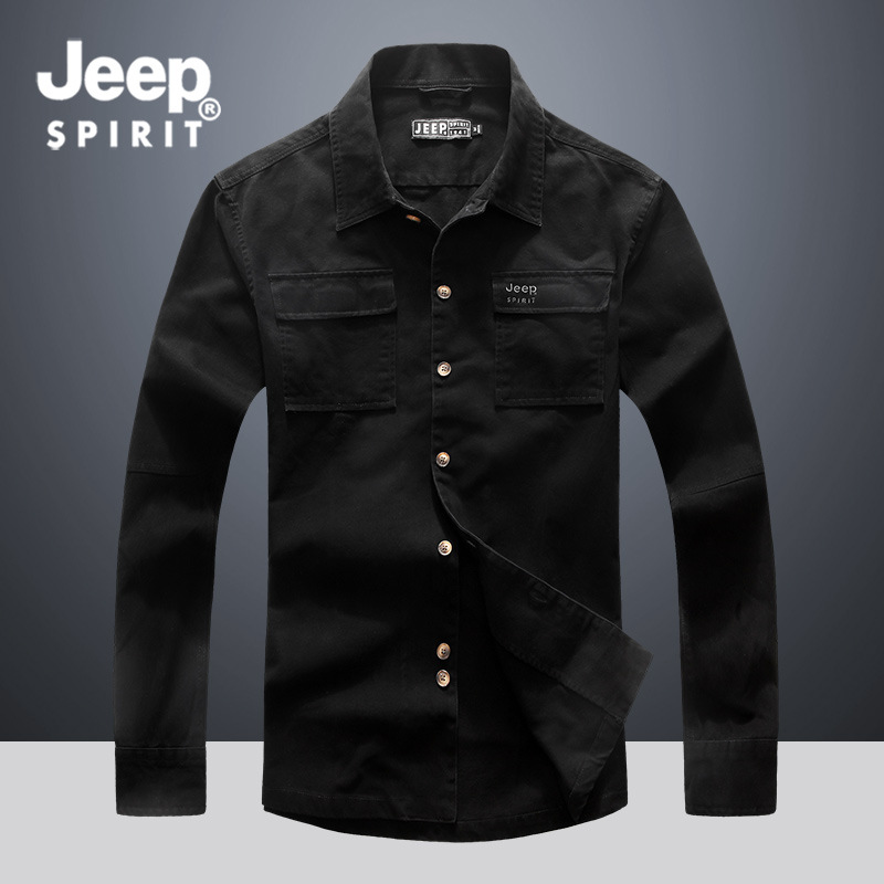 JEEP SPIRIT秋冬新品长袖衬衫男士秋季工装多口袋薄款外套宽松上衣加大码HB-T066
