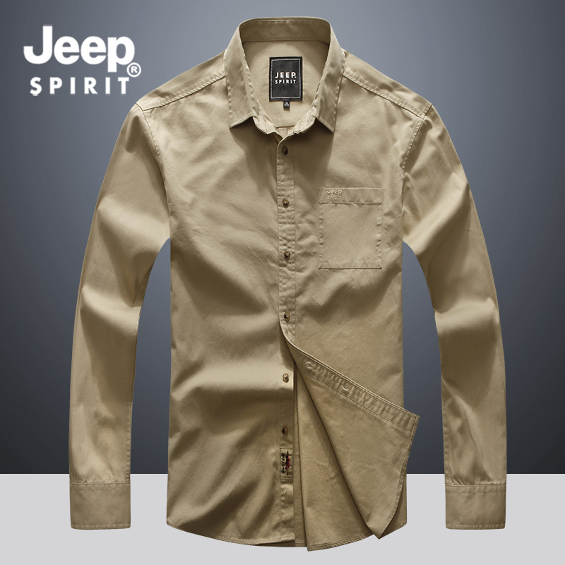 JEEP SPIRIT衬衣长袖男休闲秋季棉质工装简约衬衫男装纯色百搭上衣秋冬新HB-T9213