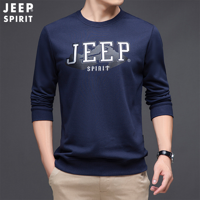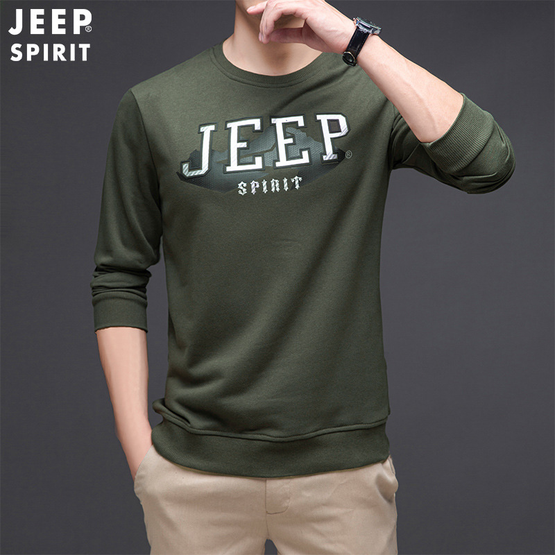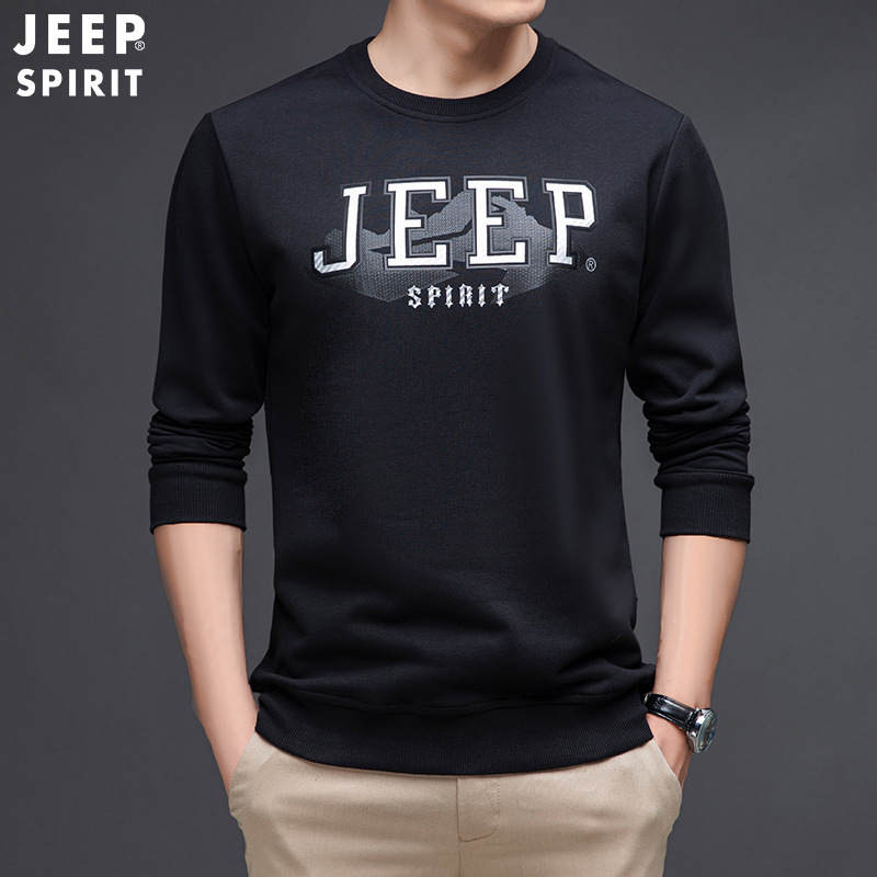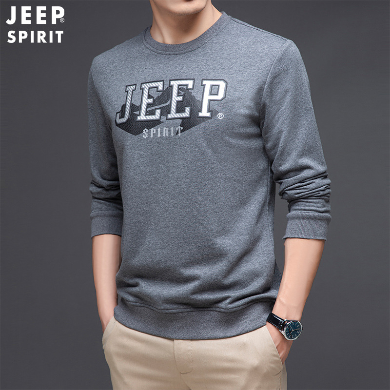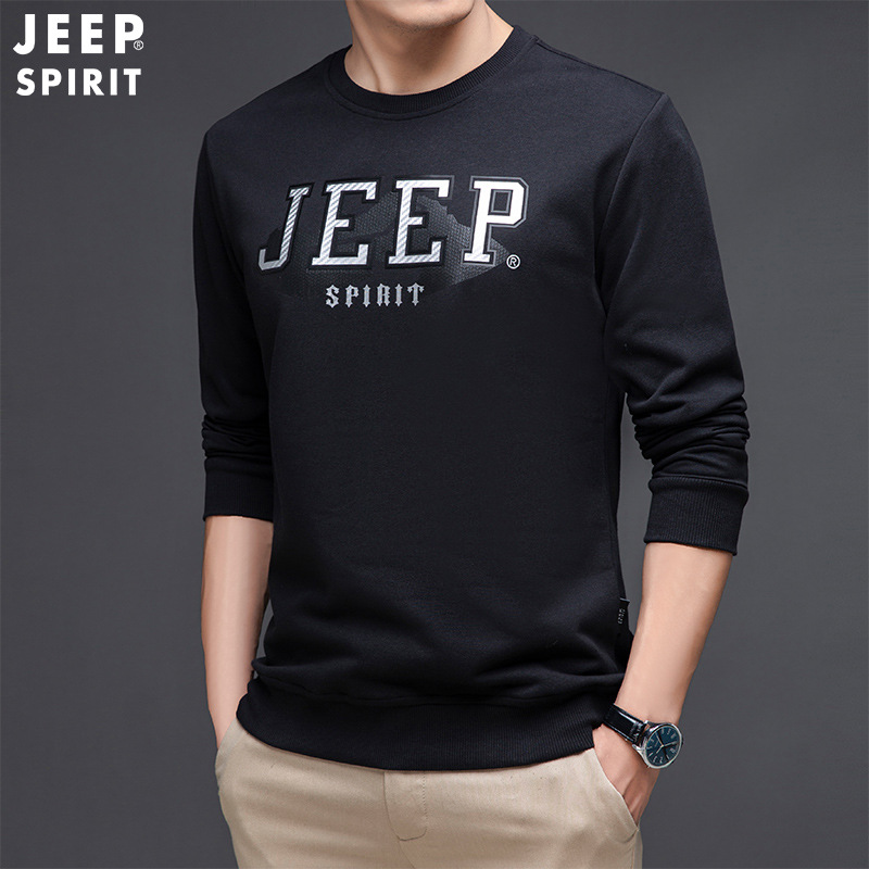 JEEP SPIRIT秋冬新品长袖t恤男圆领休闲宽松大码打底衫秋季卫衣男装中年H-9011