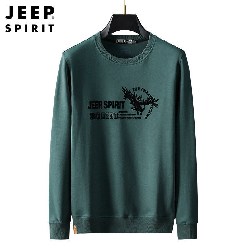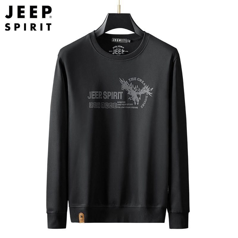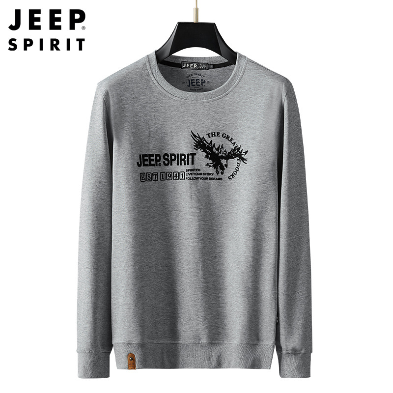 JEEP SPIRIT新款简约中年时尚舒适圆领卫衣男新款长袖打底衫大码t恤宽松DW-ZY1815