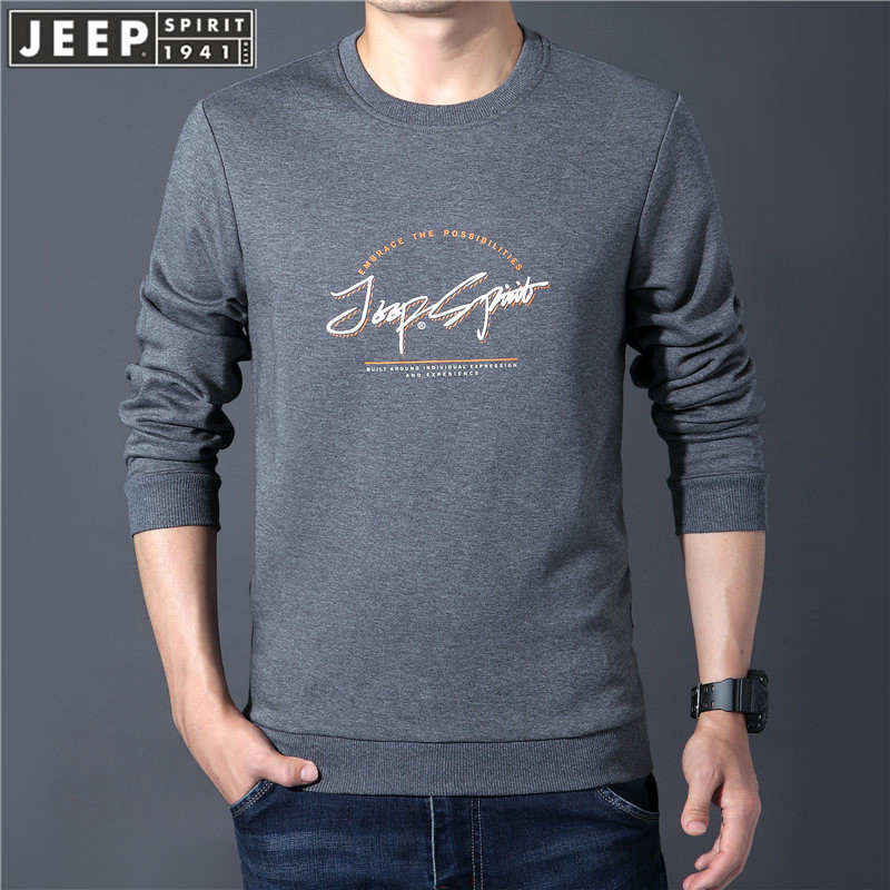 JEEP SPIRIT长袖印花t恤男秋季新款圆领休闲卫衣宽松套头衫秋冬TS5110
