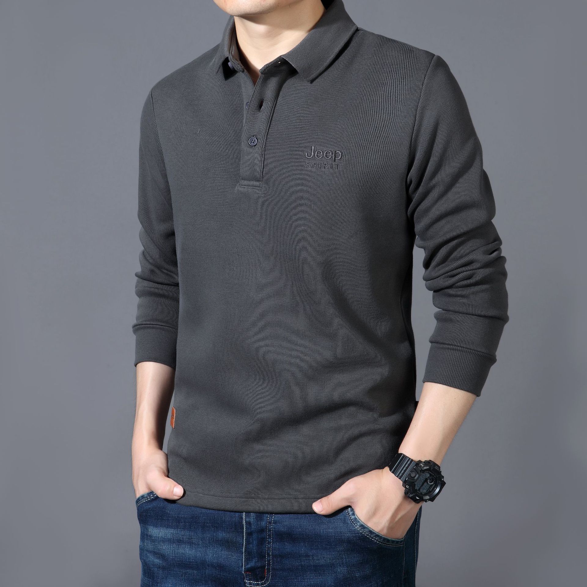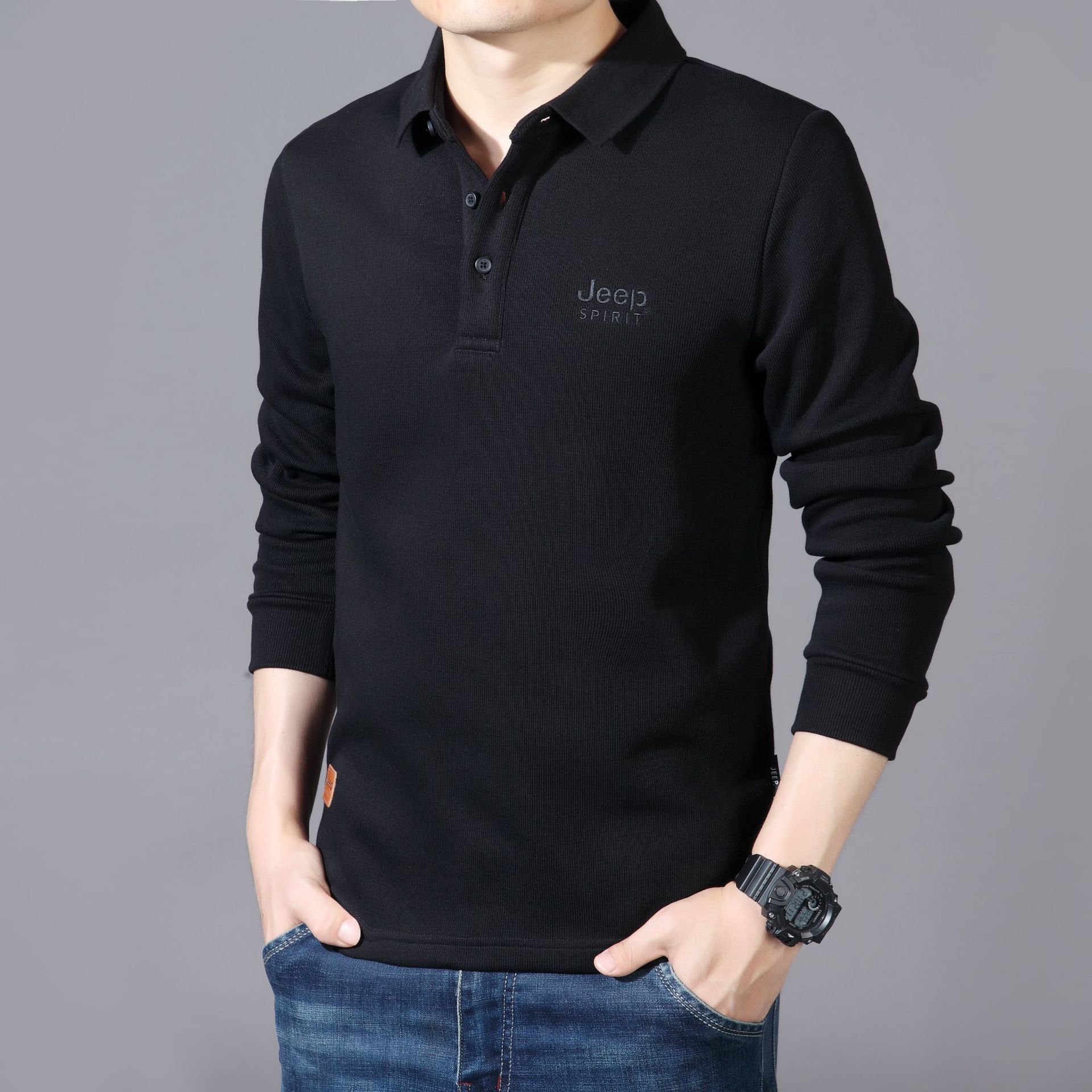 JEEP SPIRIT秋冬新品长袖T恤秋季男士中年翻领打底衫宽松大码休闲polo衫PS5200
