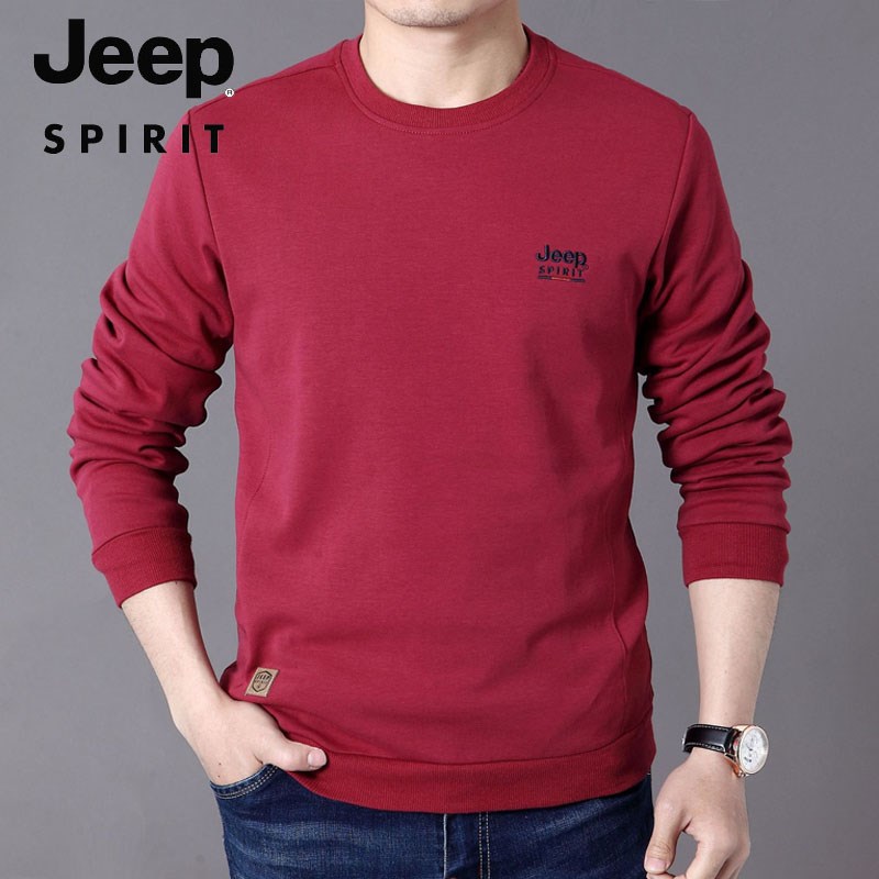 JEEP SPIRIT秋冬新品长袖t恤男圆领棉质休闲宽松大码打底衫秋季卫衣男装H-9008