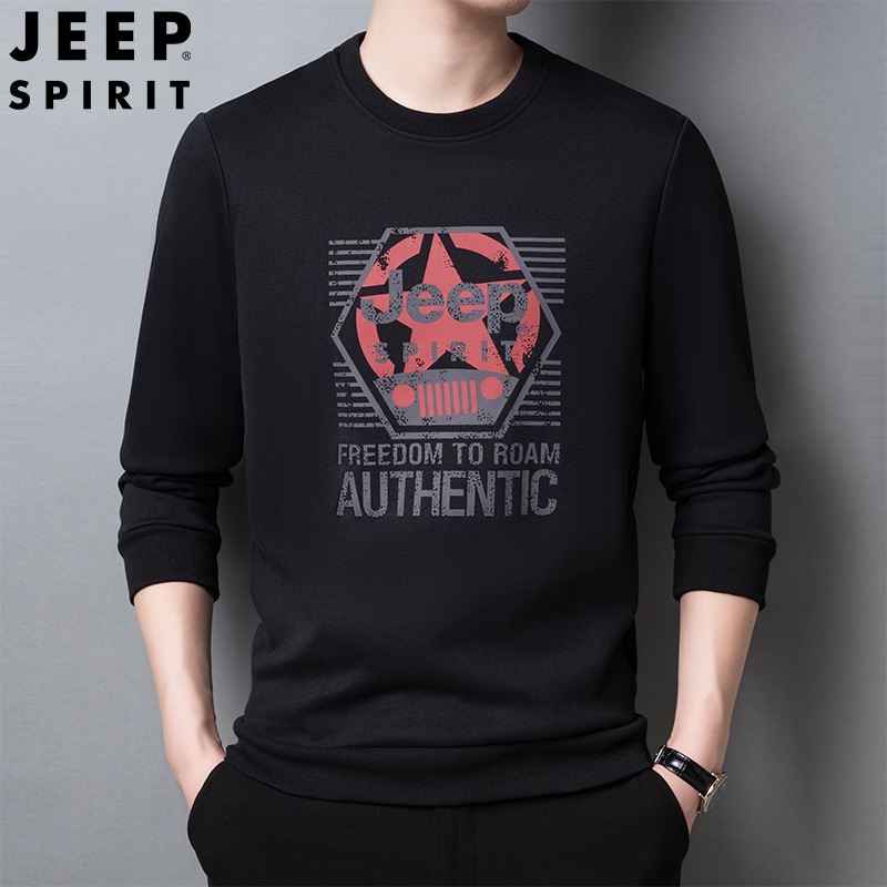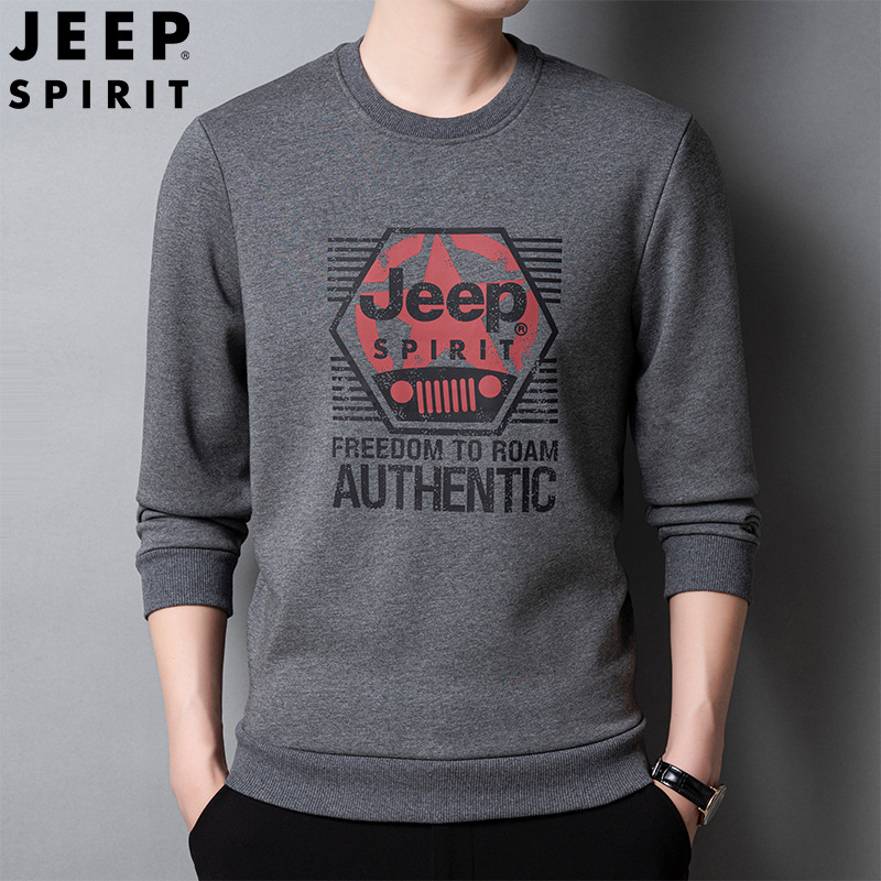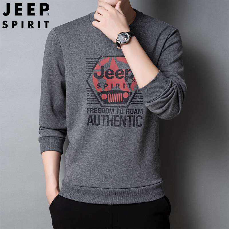 JEEP SPIRIT秋冬新品卫衣男士秋季圆领长袖t恤宽松秋男装运动套头打底衫H-7005