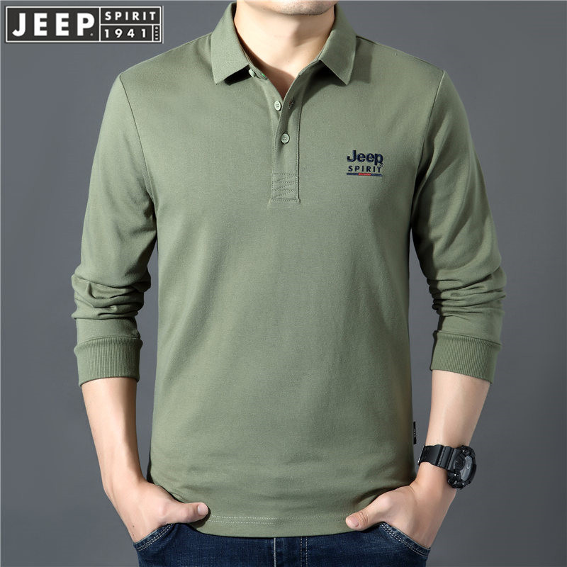 JEEP SPIRIT新款长袖Polo衫条纹中年男士商务长袖t恤休闲打底衫秋冬新品HB-T3838