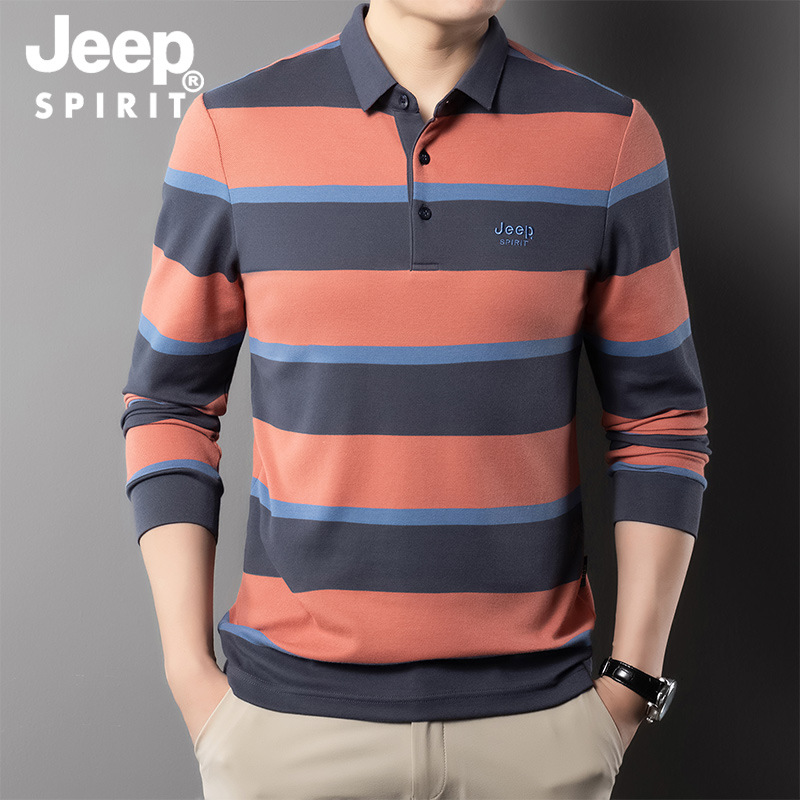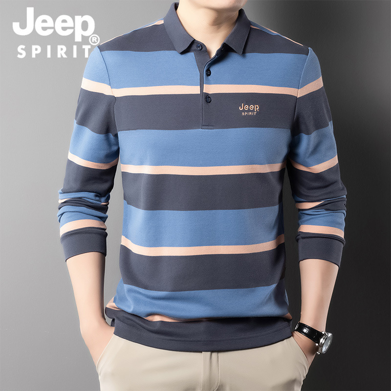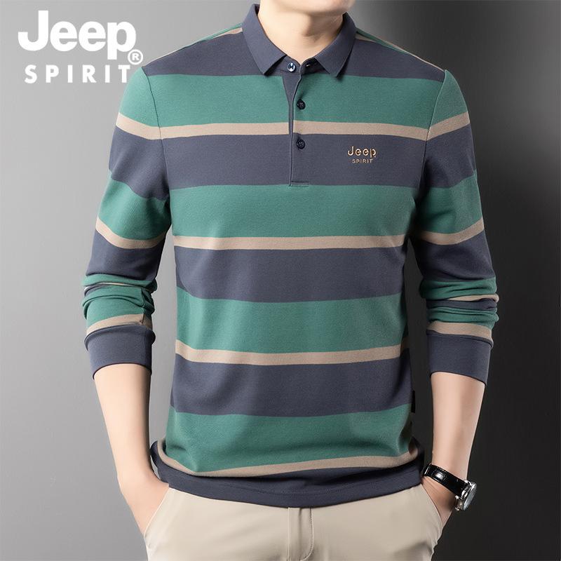 JEEP SPIRIT新款长袖Polo衫条纹中年男士商务长袖t恤休闲打底衫秋冬新品HB-T3838