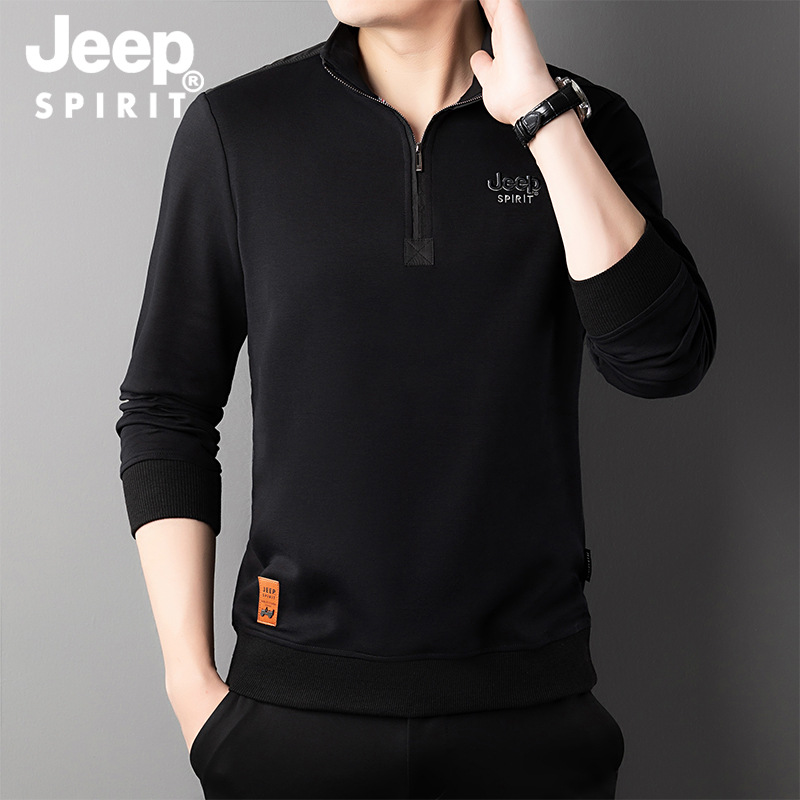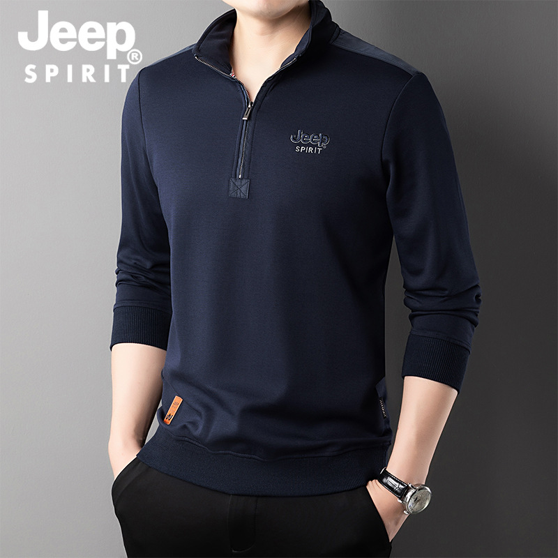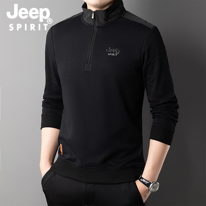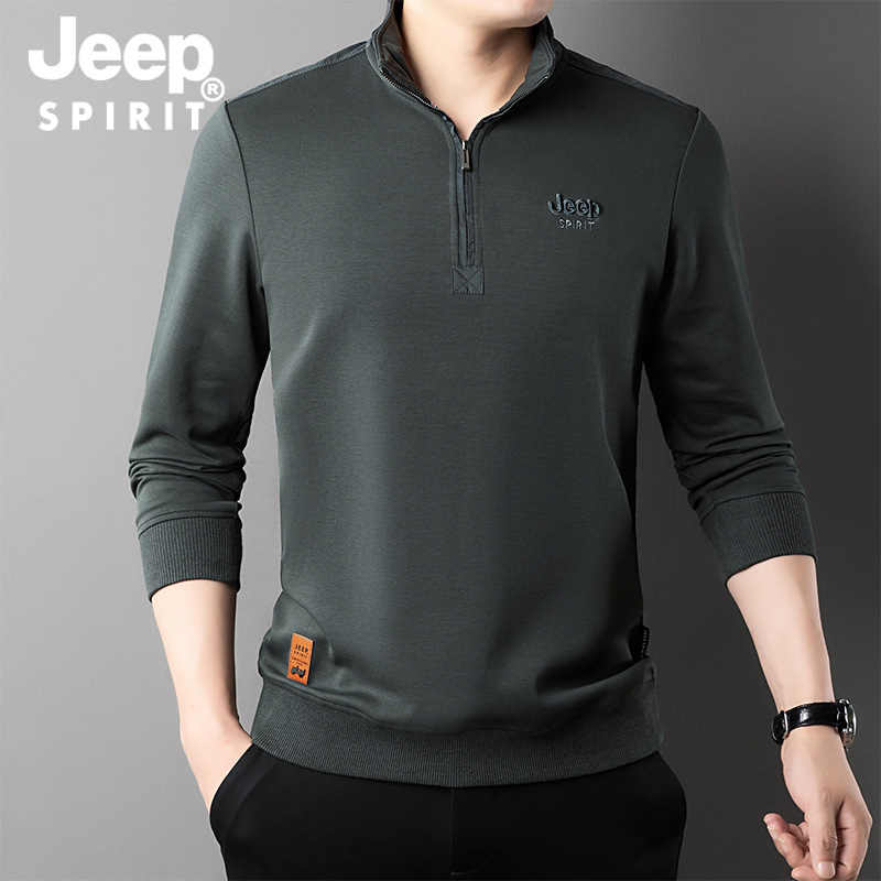 JEEP SPIRIT时尚长袖T恤男士立领针织卫衣套头衫宽松半拉链上衣服秋冬新HB-T8529