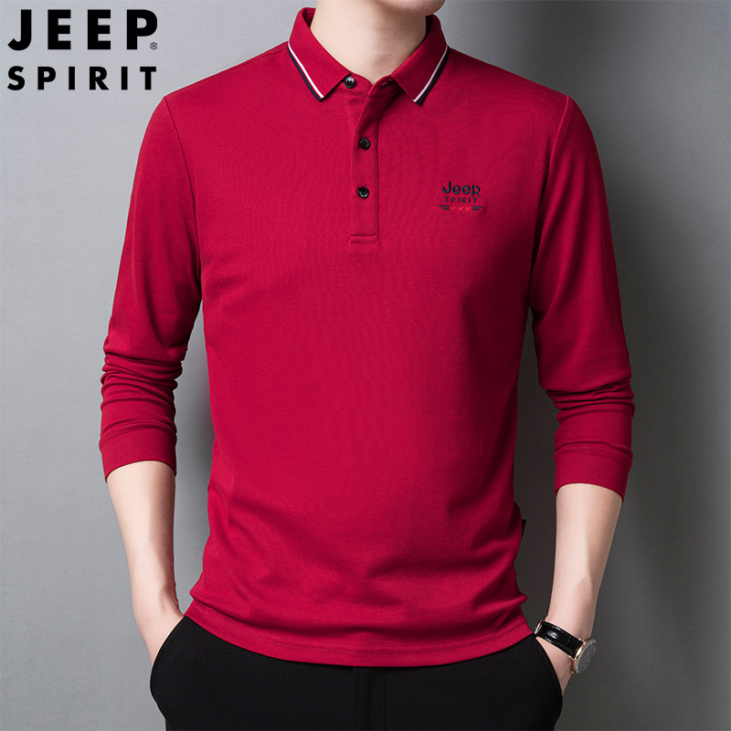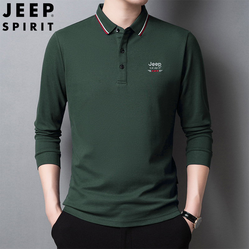 JEEP SPIRIT秋冬新品长袖POLO衫男秋装新款休闲翻领上衣宽松大码修身t恤H-9029