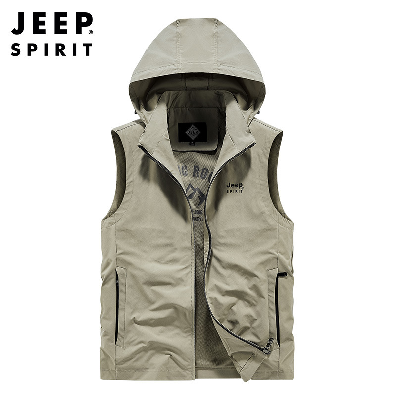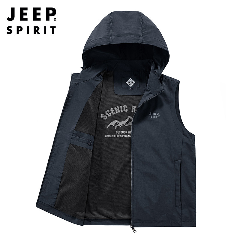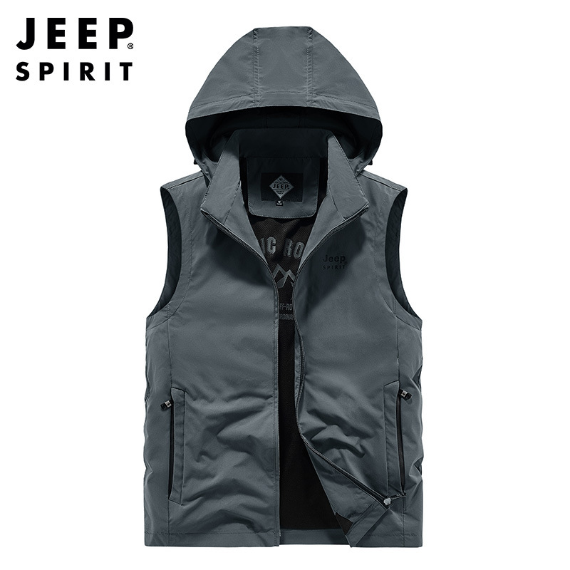 JEEP SPIRIT百搭秋季带帽子外穿运动休闲坎肩连帽背心薄款马夹秋冬新品潮JA0381259