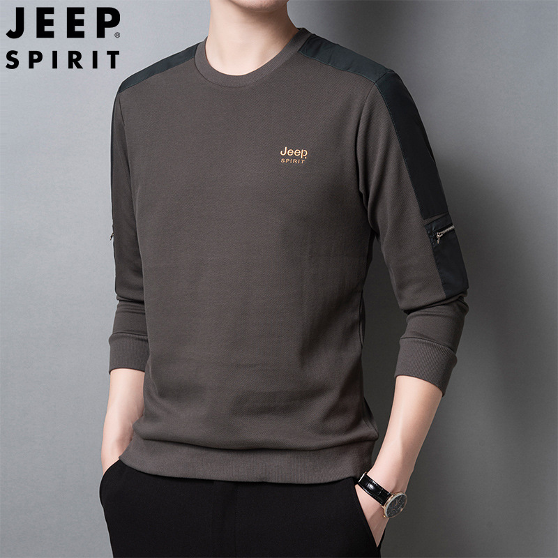 JEEP SPIRIT秋季美系新款休闲户外宽松卫衣男士T恤男装潮牌户外商务上衣H-7271