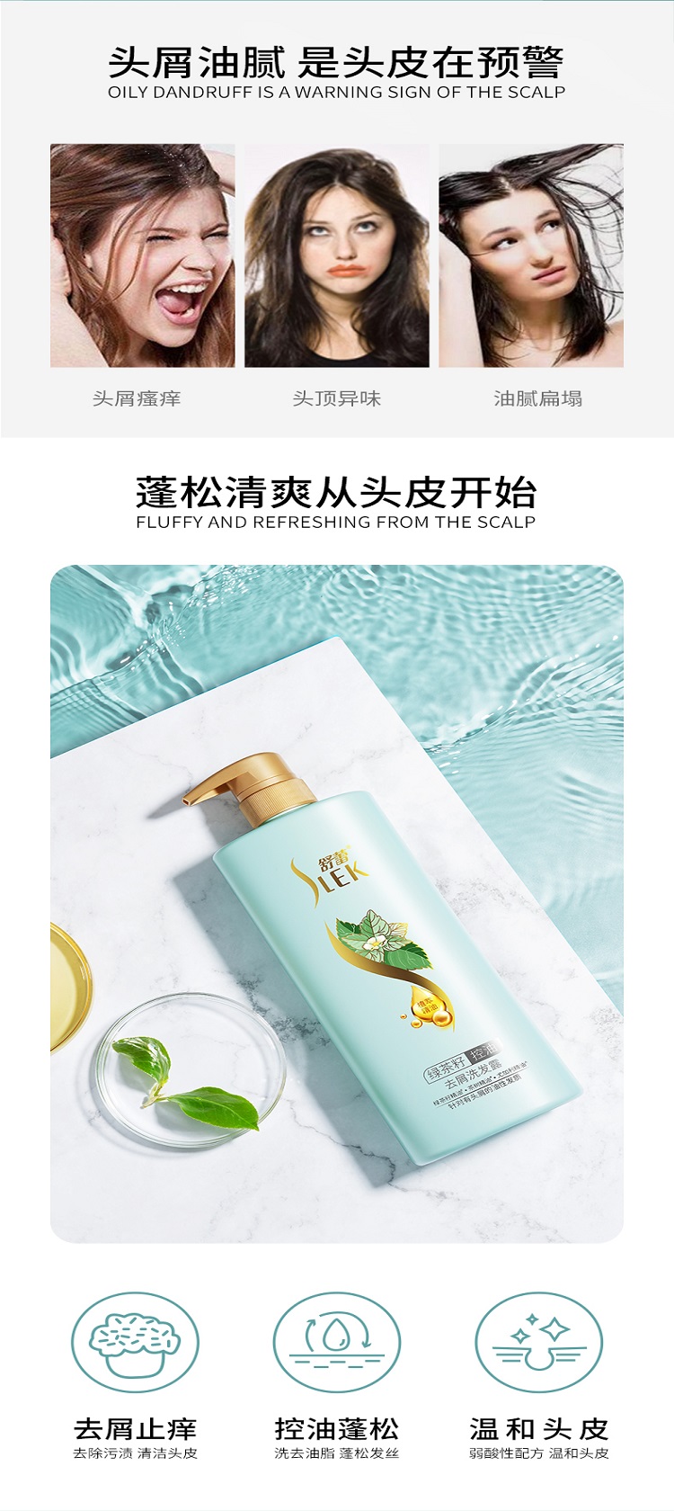 舒蕾绿茶籽控油去屑洗发露800ml*2支