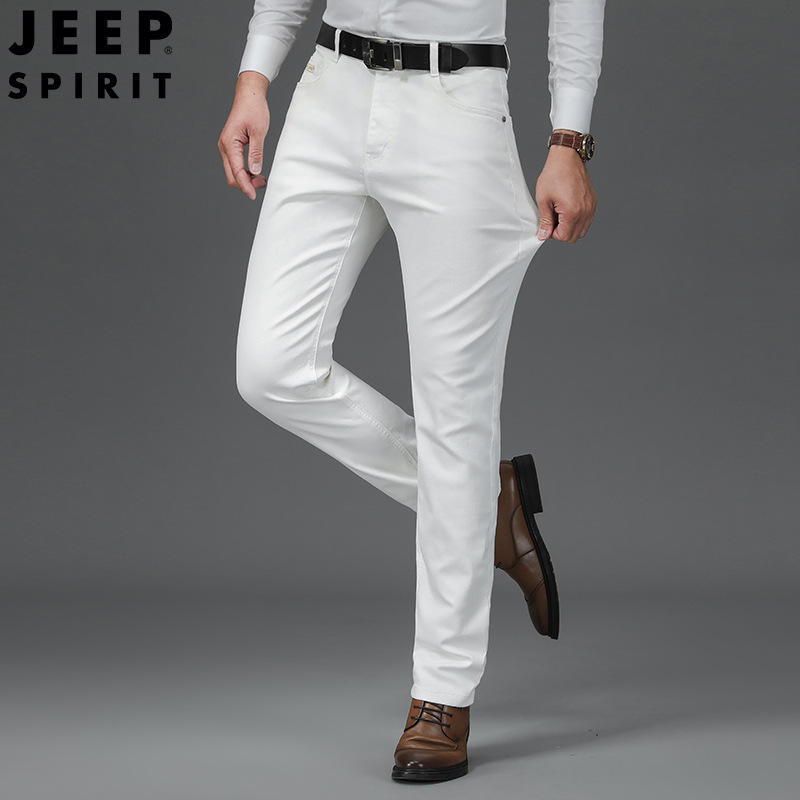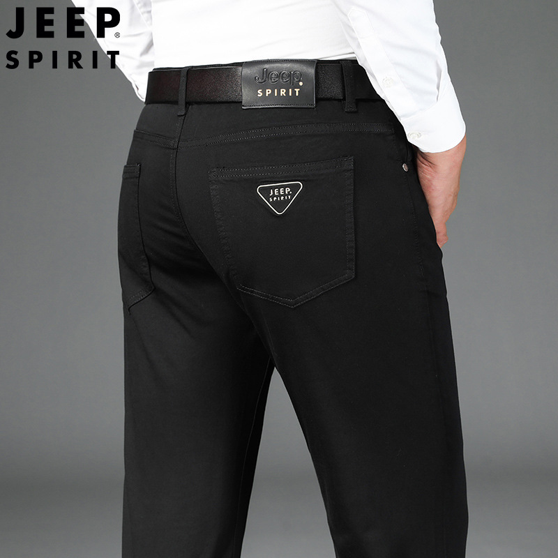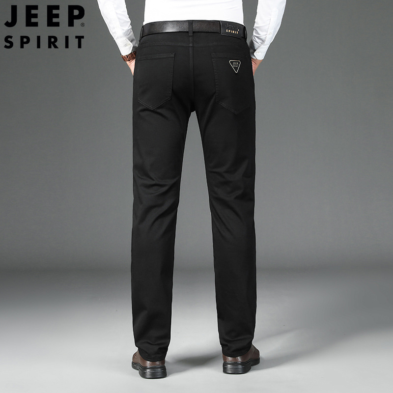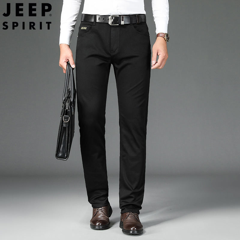 服饰配饰>男装>牛仔裤> JEEP SPIRIT秋季纯色商务牛仔裤男修身直筒休闲裤子中年上班长裤秋冬新品H-J316