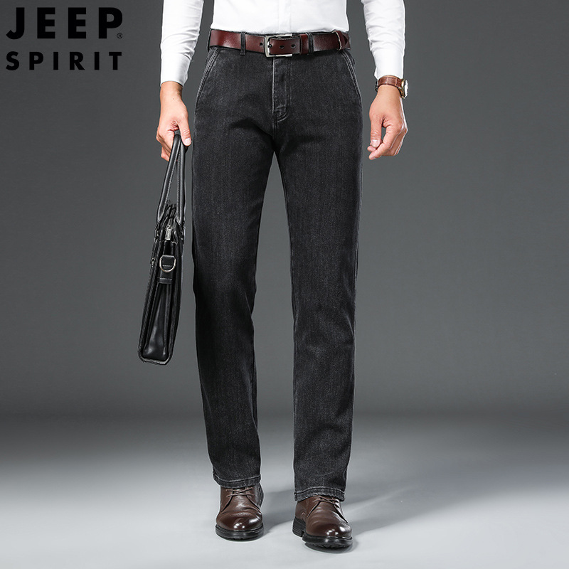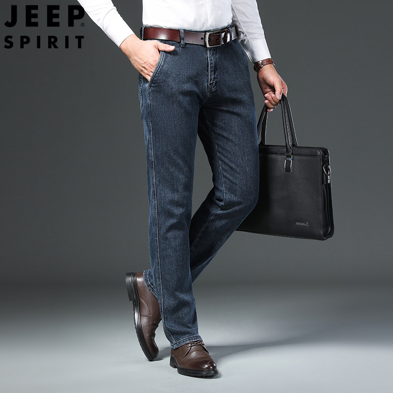 JEEP SPIRIT成熟牛仔裤男士宽松直筒大码休闲男裤简约弹力长裤子秋冬新品H-J768
