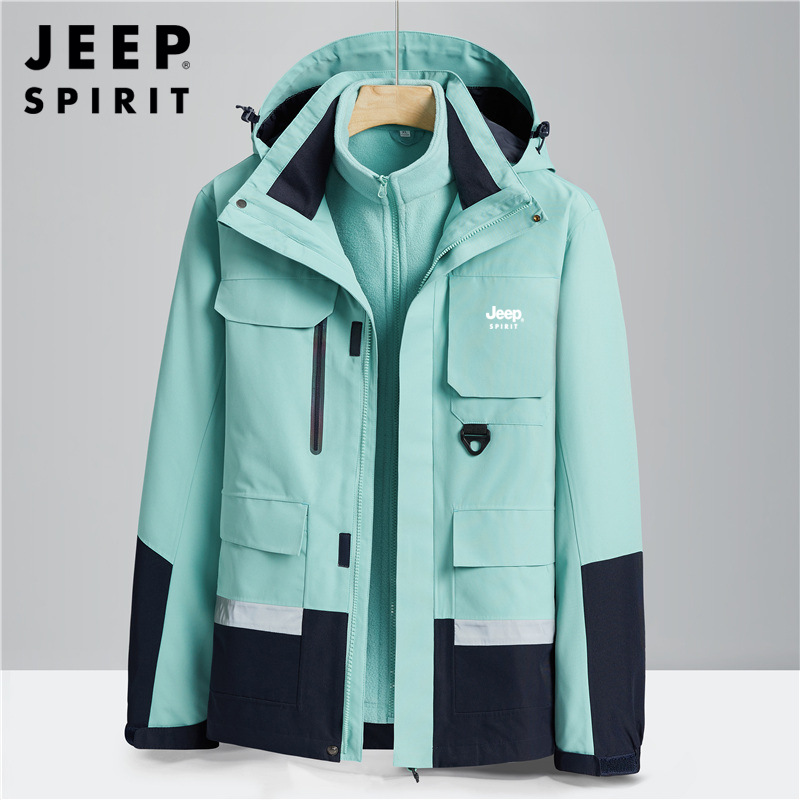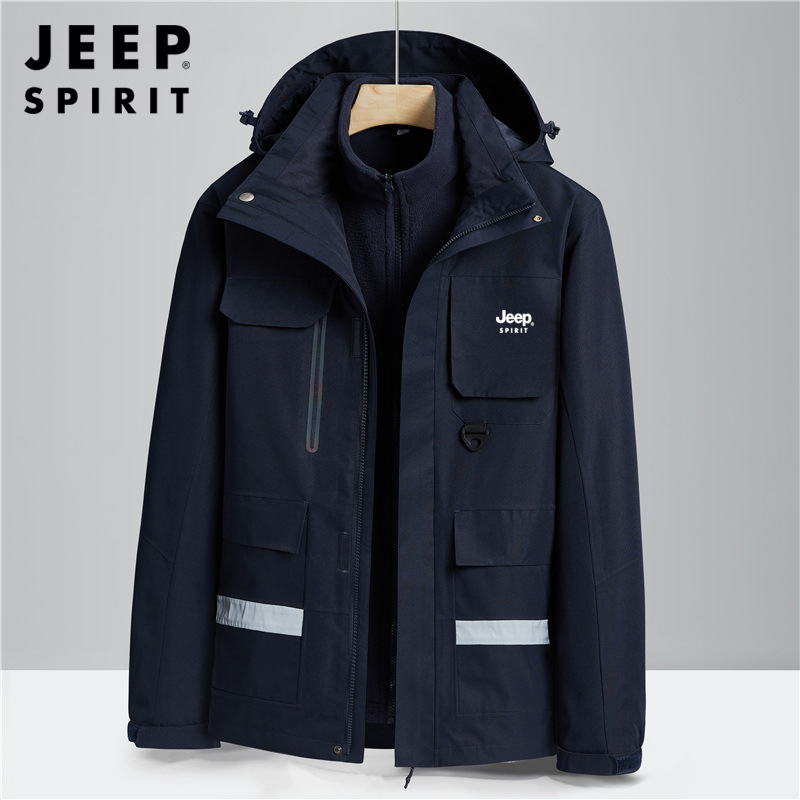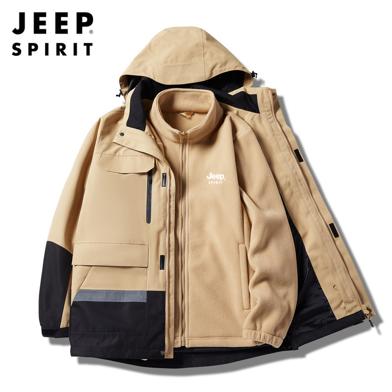 JEEP SPIRIT摇粒冲锋衣冬季纯色连帽可拆卸立领高品质冲锋衣JP-22828
