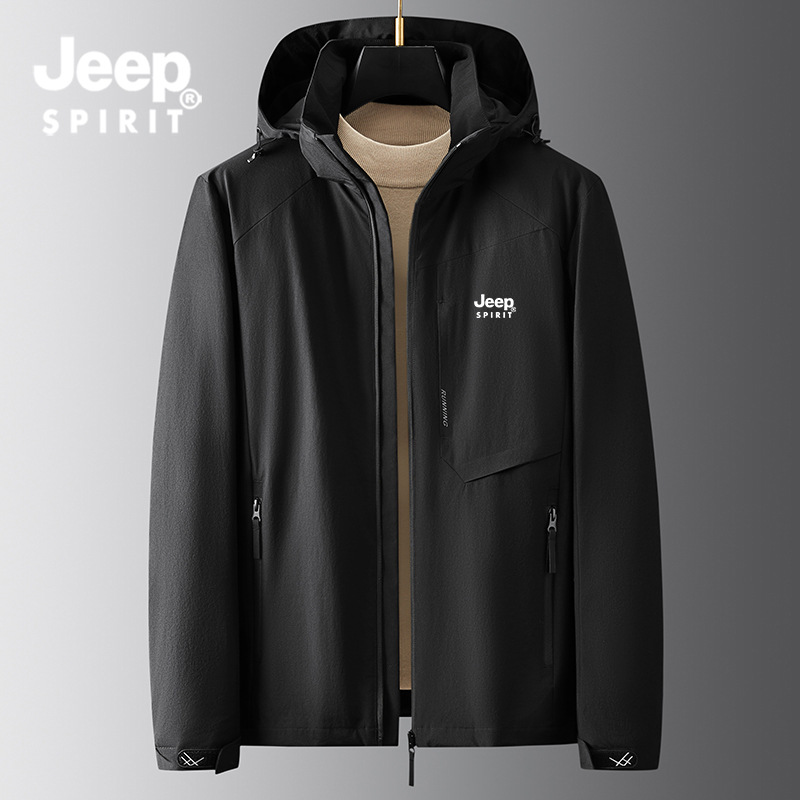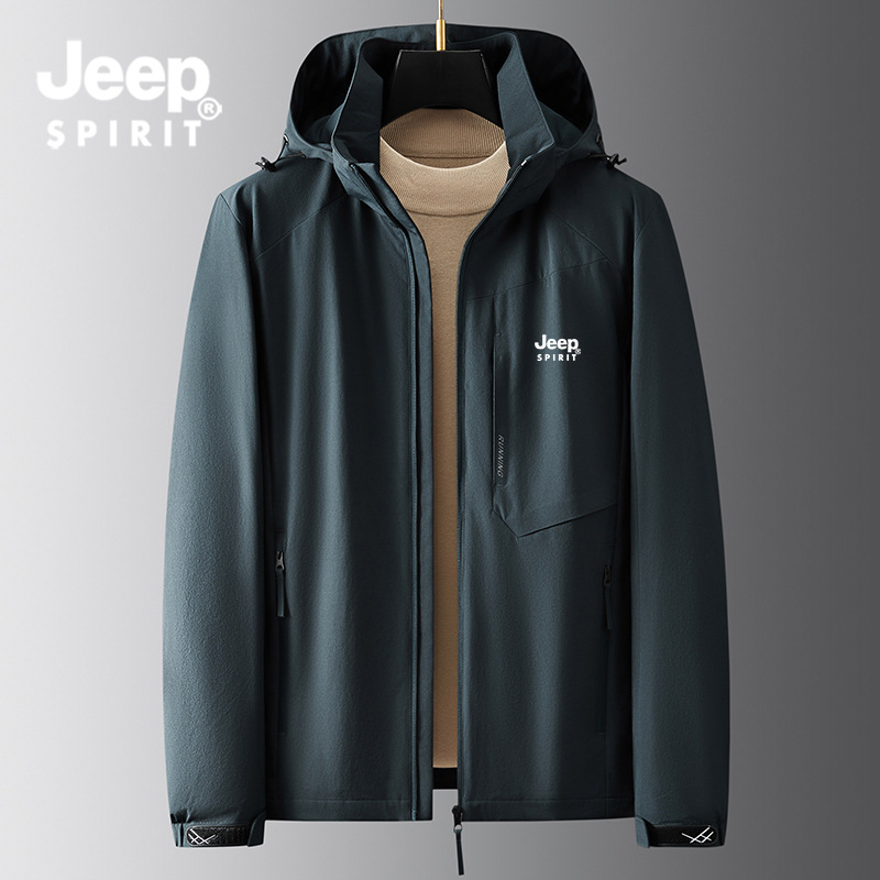 JEEP SPIRIT秋冬新品外套男连帽夹克可拆卸帽休闲运动户外防风冲锋衣男士HB-JK65666