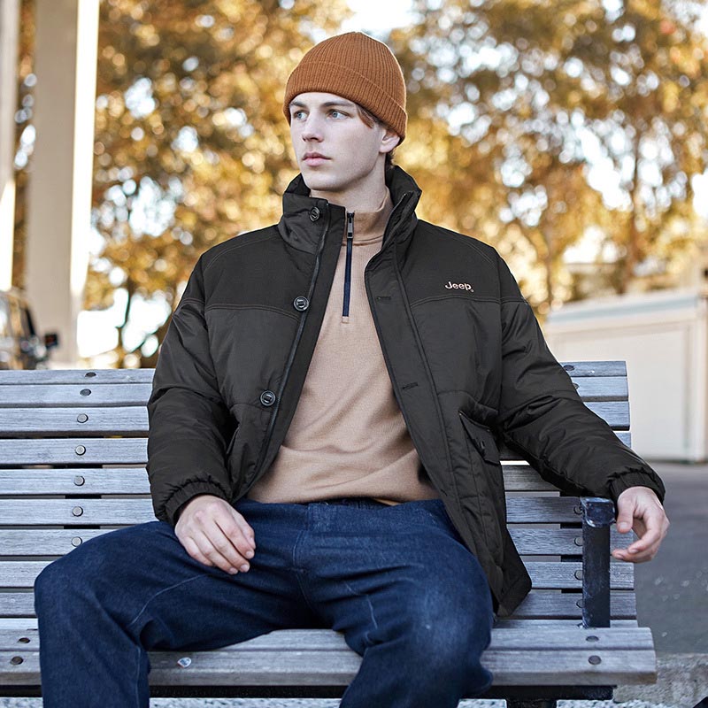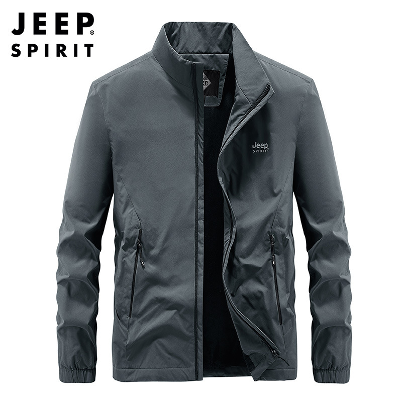 JEEP SPIRIT保暖外套运动男秋季男士上衣中年立领秋冬新品休闲大码夹克JR0461257