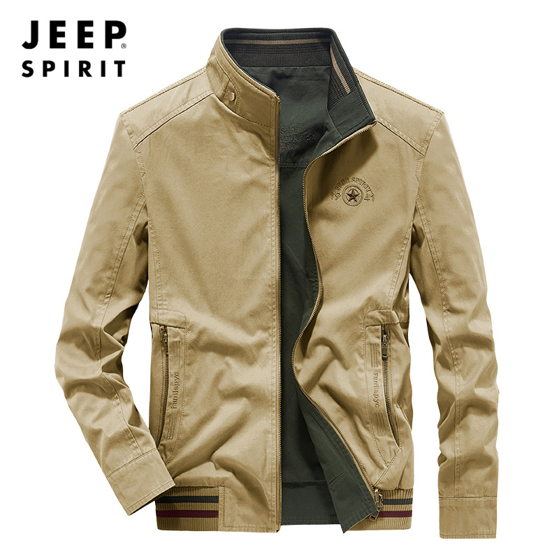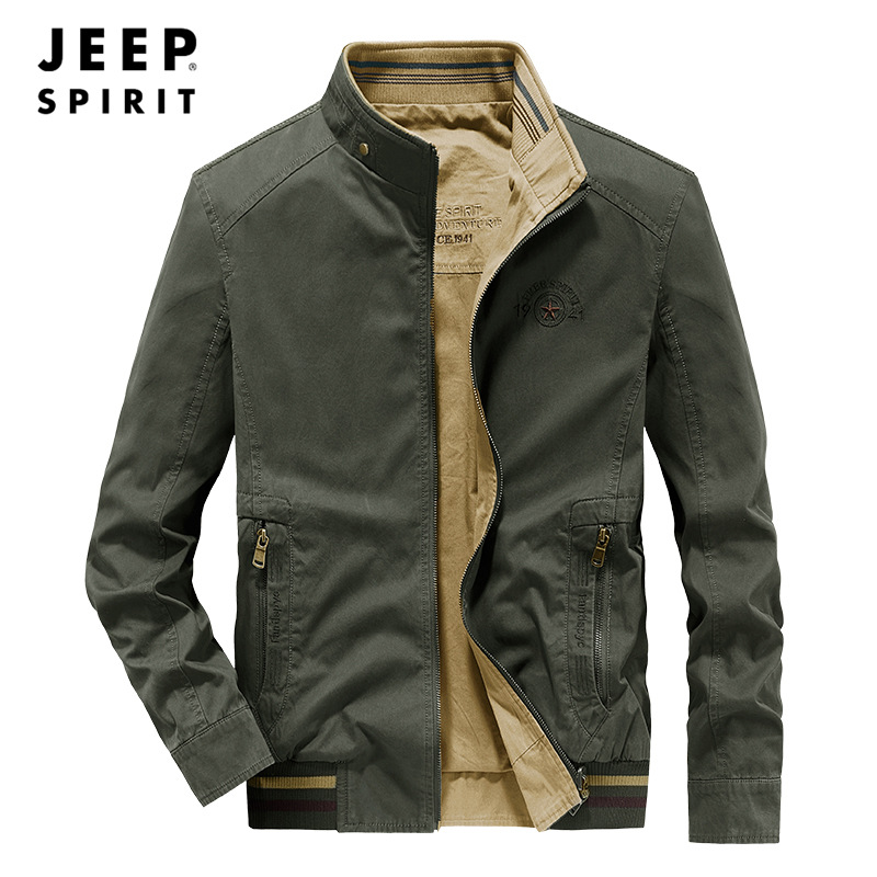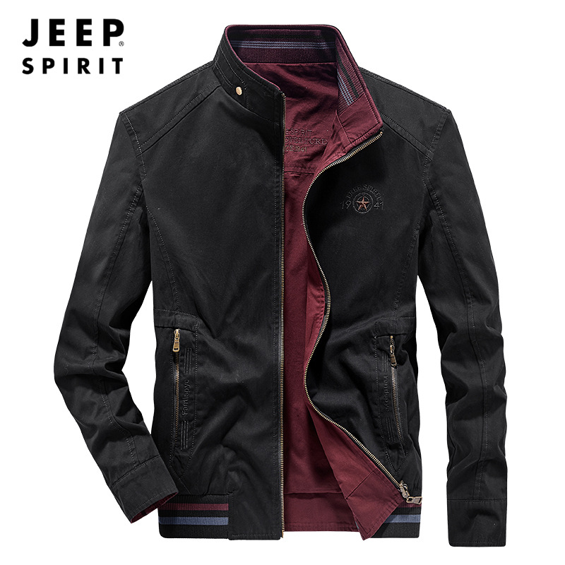JEEP SPIRIT秋冬新品夹克外套男秋季中年复古立领开衫宽松休闲上衣双面穿ZGQ-0696