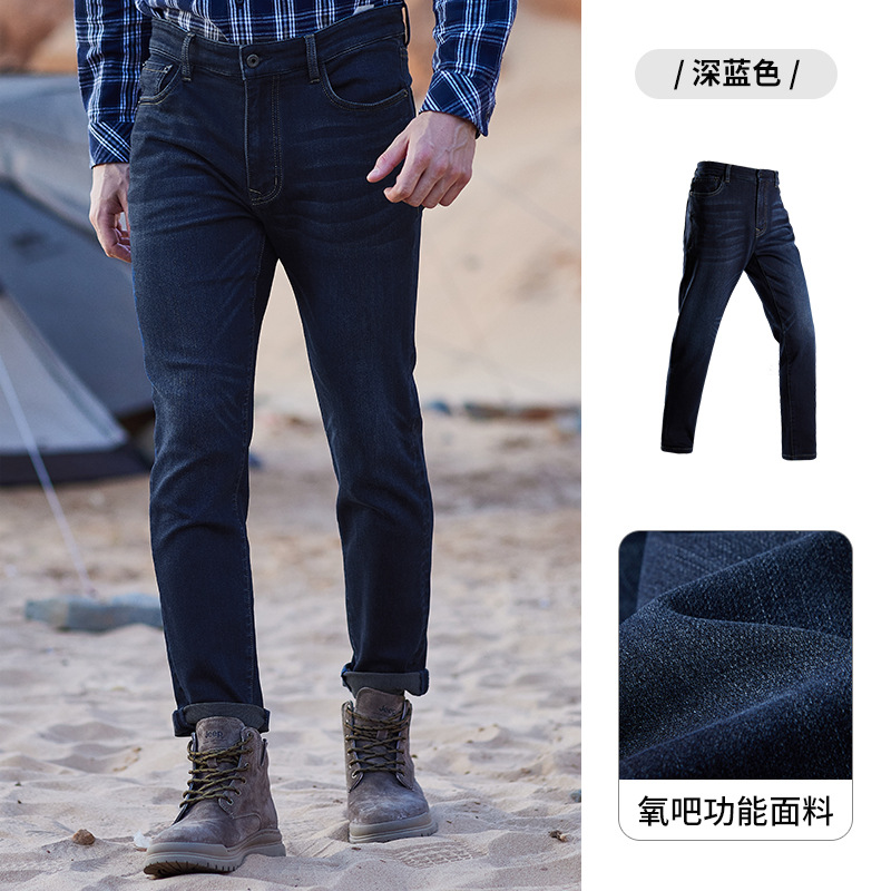 JEEP 秋冬新品高弹保暖牛仔裤男士休闲潮流百搭修身直筒长裤子男J232093674