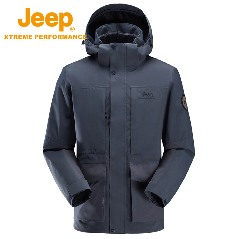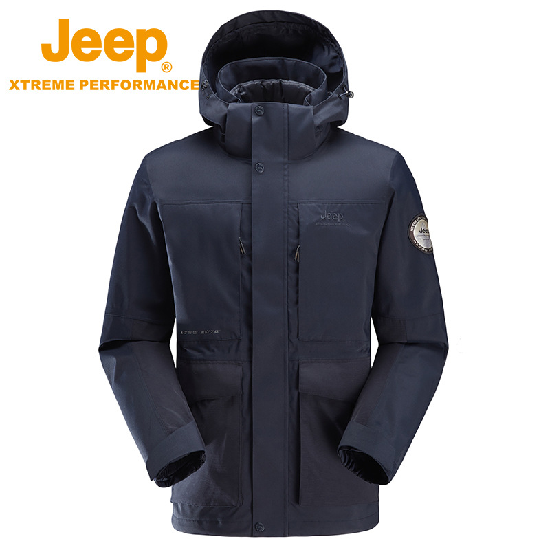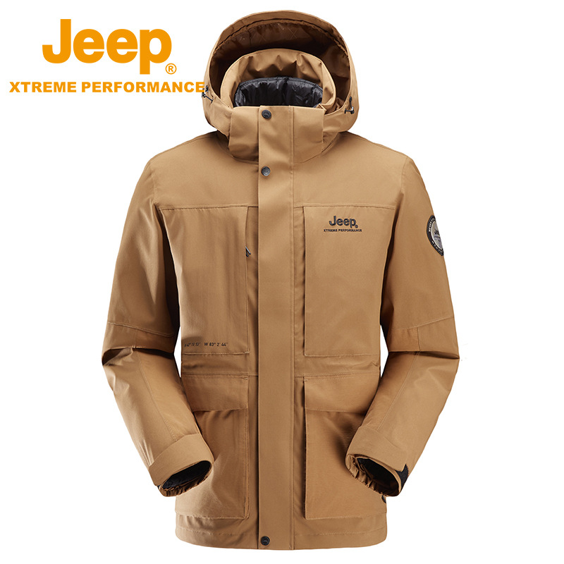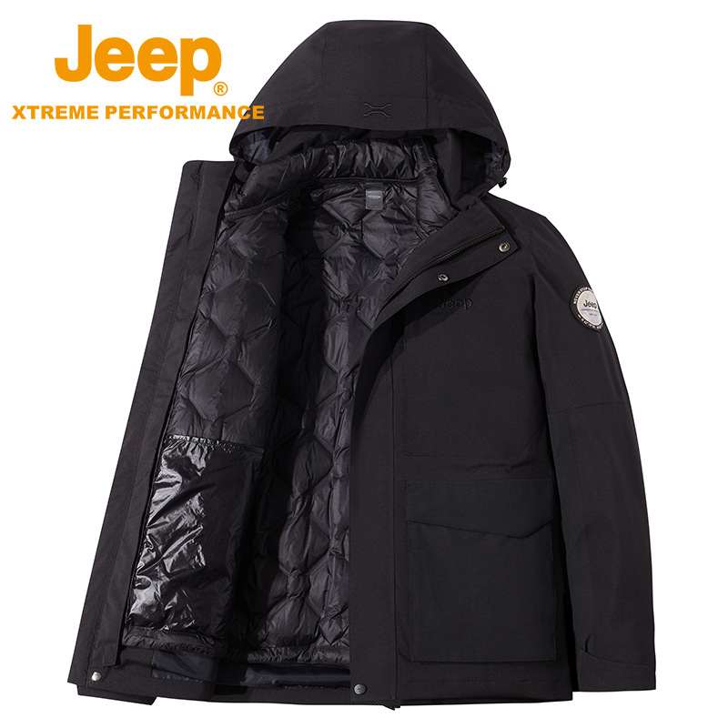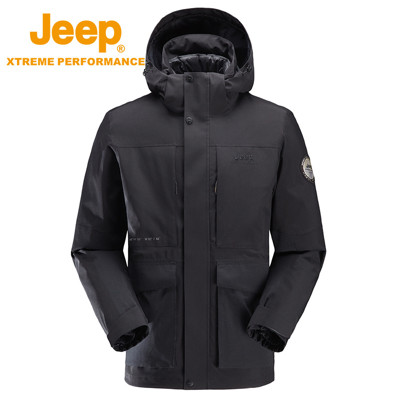 JEEP 冬季保暖冲锋衣男士秋冬新品可拆卸羽绒两件套户外登山外套潮J242094099