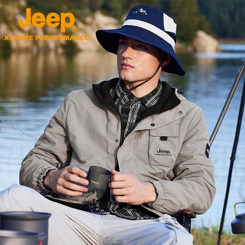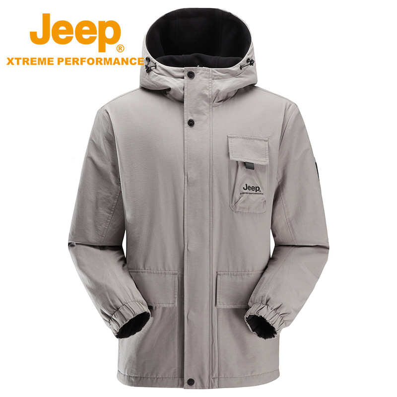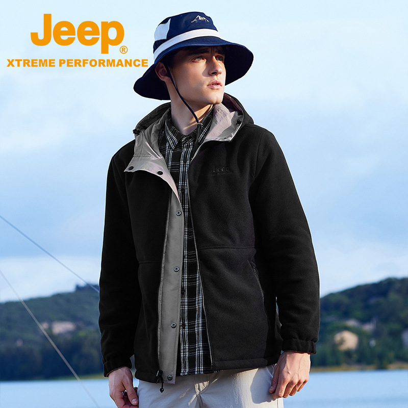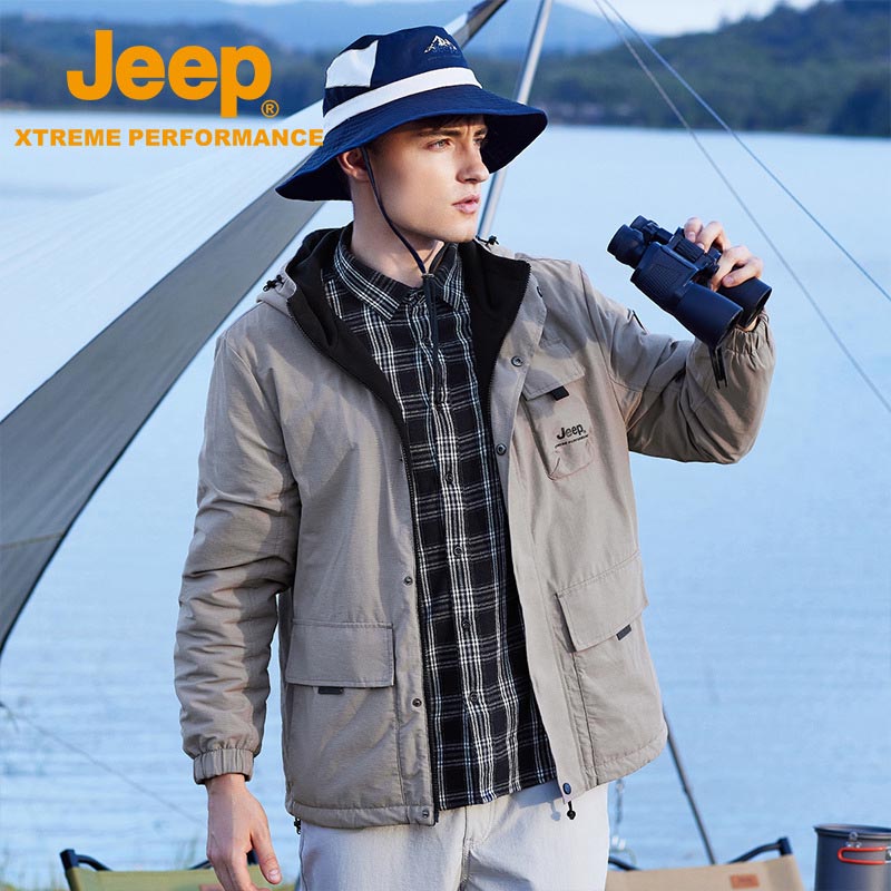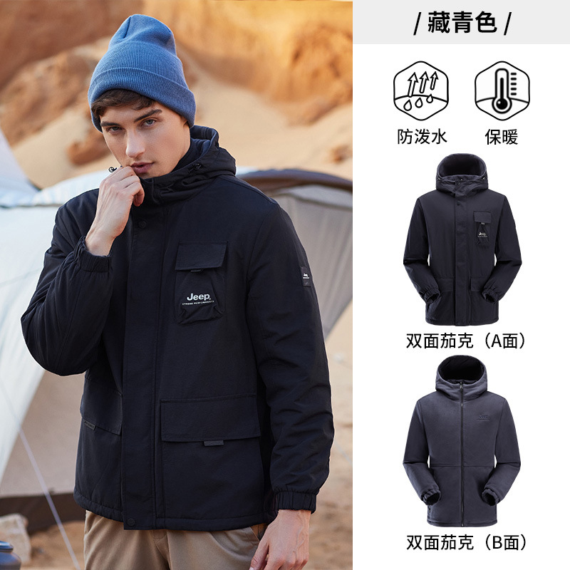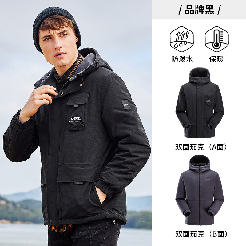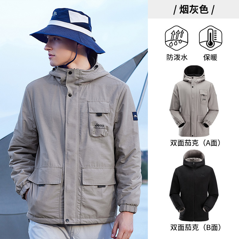 JEEP 男装秋冬季新款双面夹克连帽外套男大码防风钓鱼冲锋衣茄克J232095056
