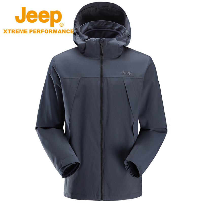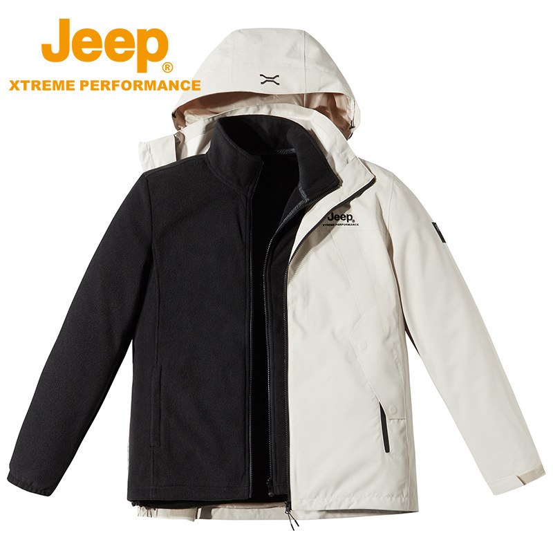 JEEP 冬季冲锋衣男防水防风可拆卸抓绒两件套户外登山服外套潮秋冬J232094091